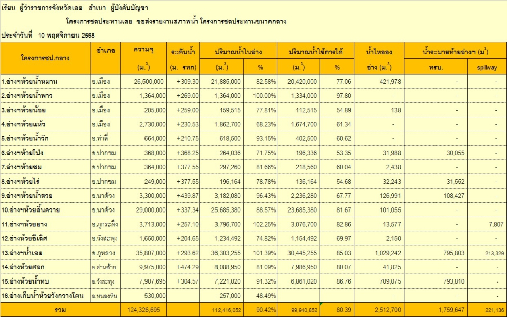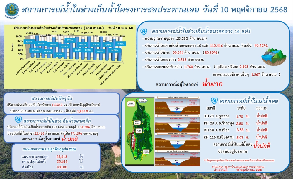 โครงการชลประทานเลย สรุปภาพรวมสถานการณ์น้ำ ประจำวันที่ 10 พฤศจิกายน 2568