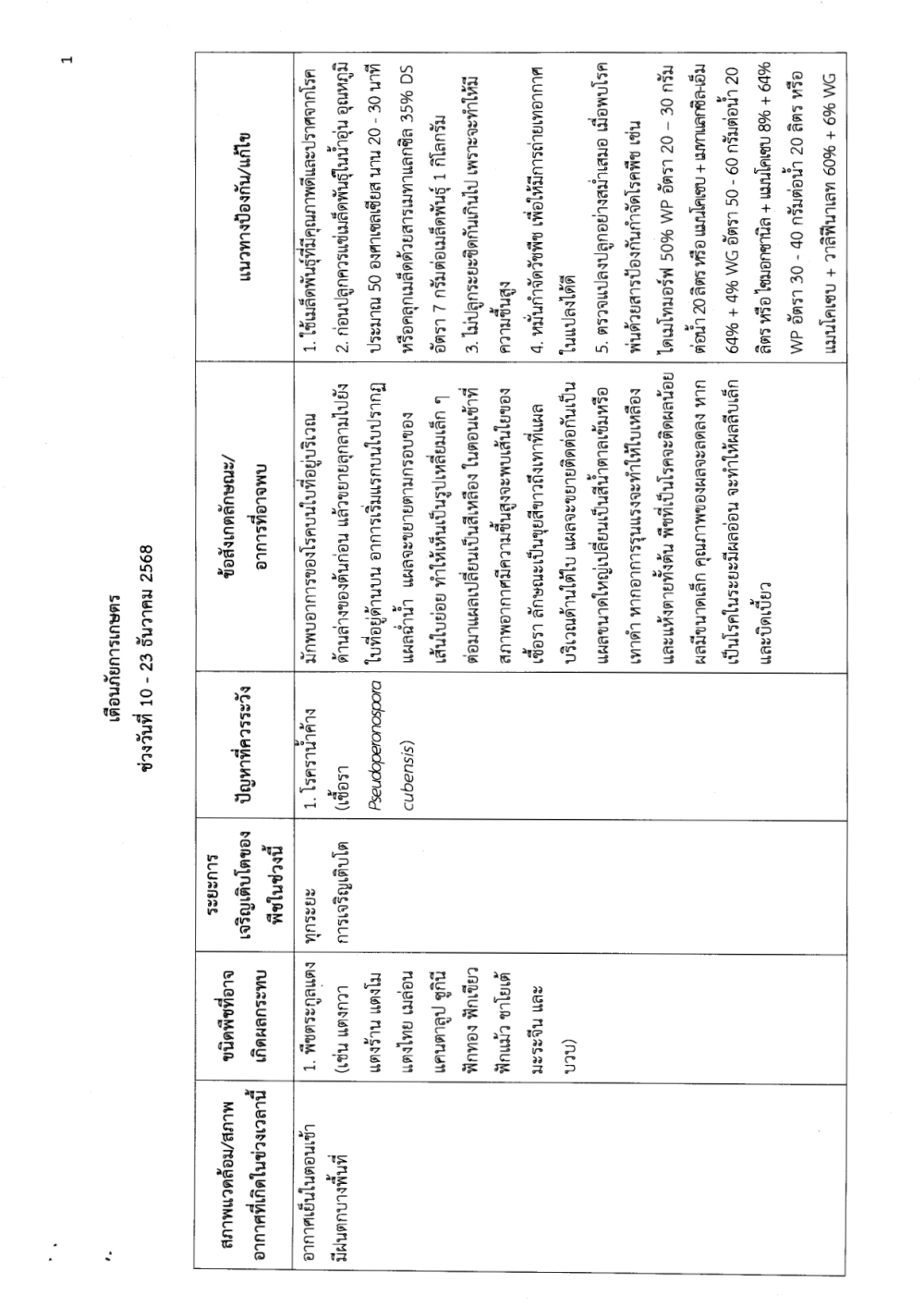 เตือนภัยการเกษตร ช่วงวันที่ 10 - 23 ธันวาคม 2568