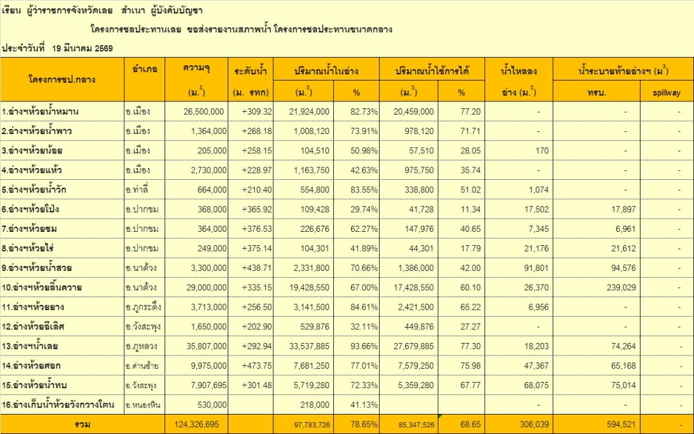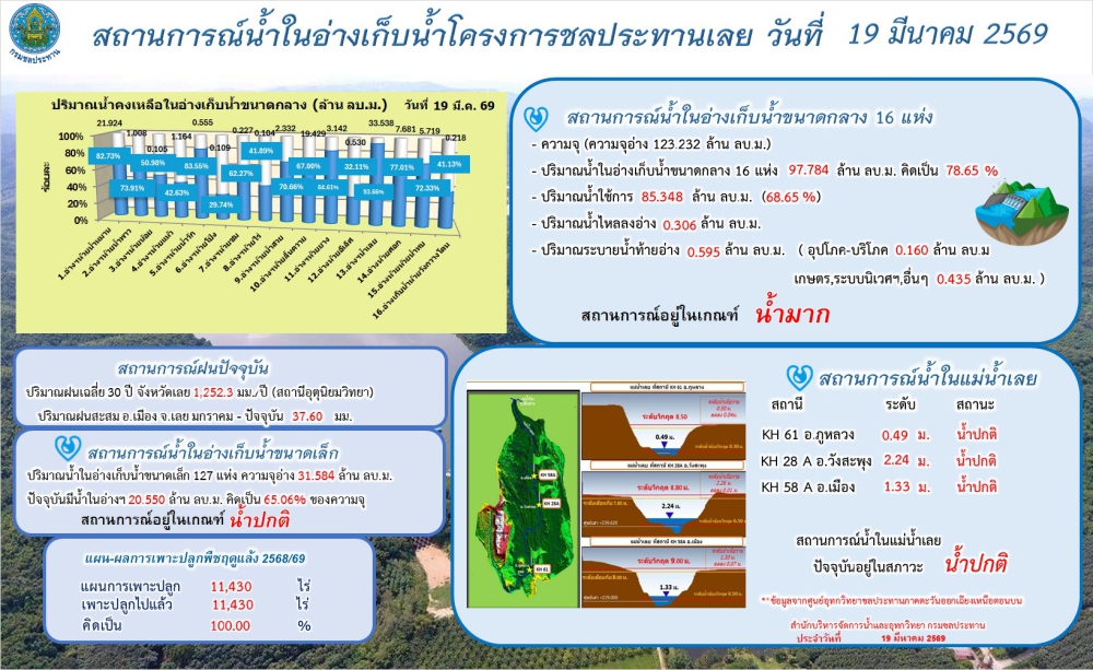 โครงการชลประทานเลย ขอสรุปภาพรวมสถานการณ์น้ำ ประจำวันที่ 19 มีนาคม 2569
