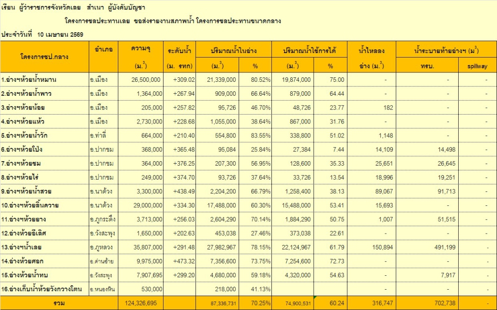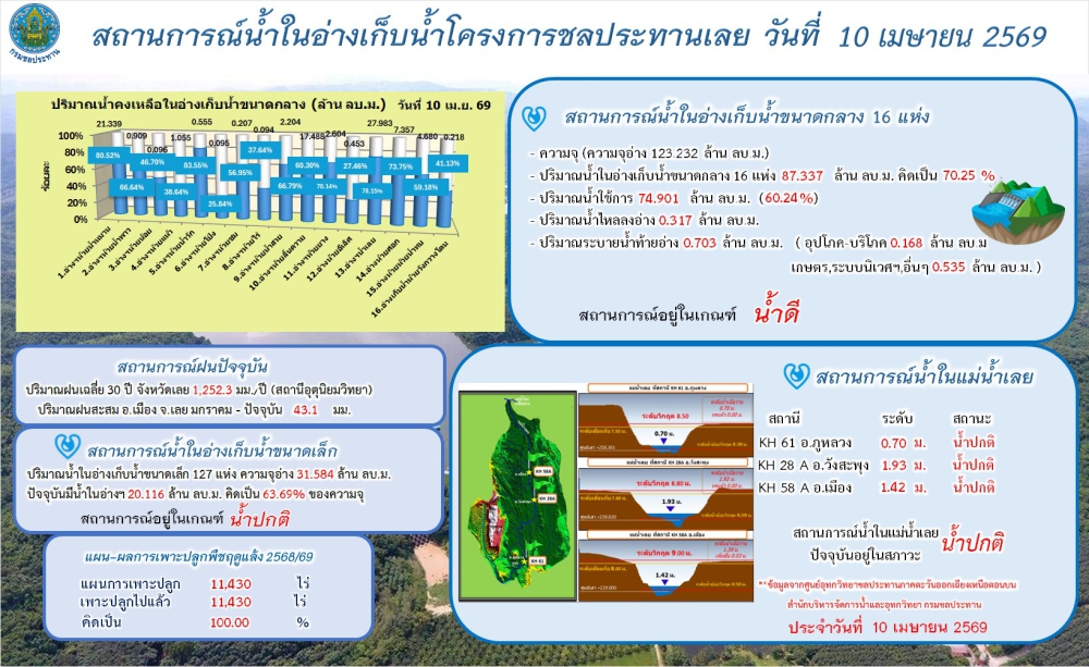 โครงการชลประทานเลย ขอสรุปภาพรวมสถานการณ์น้ำ ประจำวันที่ 10 เมษายน 2569