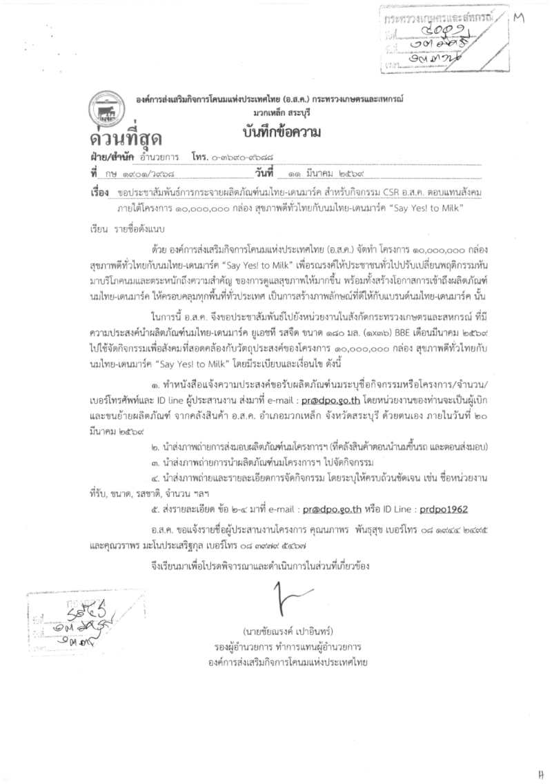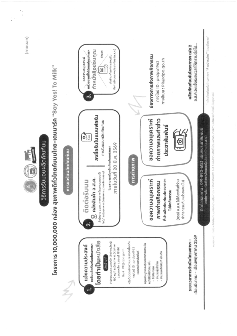 สำนักงานเกษตรและสหกรณ์จังหวัดลพบุรี ขอประชาสัมพันธ์การกระจาย ผลิตภัณฑ์นมไทย-เดนมาร์ก สำหรับกิจกรรม CSR อ.ส.ค. ตอบแทนสังคมภายใต้โครงการ 10,000,000 กล่อง สุขภาพดีทั่วไทยกับ นมไทย-เดนมาร์ก “Say Yes! to Milk”