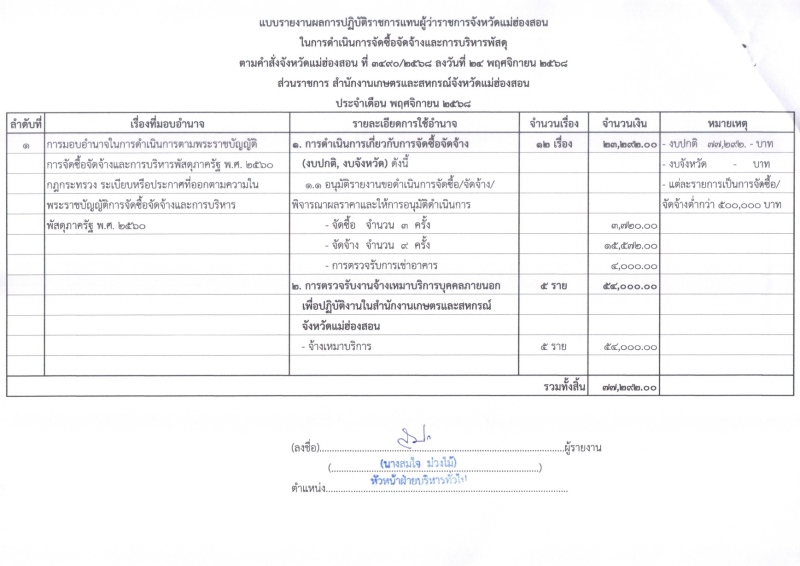 สรุปผลจัดซื้อจัดจ้าง เดือน พฤศจิกายน 2568