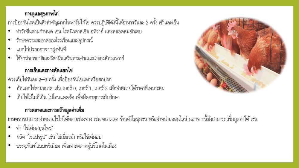 การเลี้ยงไก่ไข่ สร้างรายได้