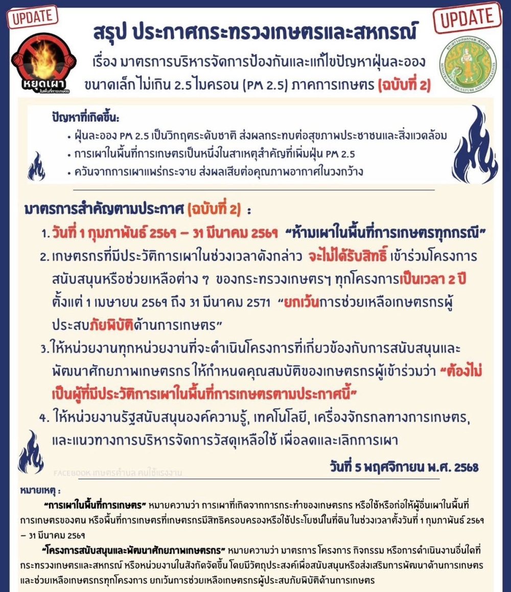 ประกาศ หยุดเผาในพื้นที่เกษตรทั่วประเทศ ทุกกรณี