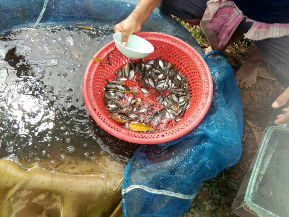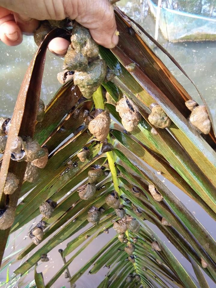 "ก่อนที่เราจะเอาลูกปลาสลิดขาย ก็จะทำกระชังเสริมไว้ในบ่ออีกทีหนึ่ง โดยเราก็จะหมั่นจับลูกปลาสลิดไซซ์ที่พอจะขายได้ มาขังไว้ในกระชังที่เตรียมไว้ พอมีคนที่เขาสนใจจะซื้อ เราก็ขายได้เลย ส่วนหอยขมพื้นที่ใต้บ่อผมก็จะเอาทางมะพร้าวไส่ลงไป หอยขมก็จะมีที่เกาะ พอตัวได้ขนาดใหญ่เท่าที่ขายได้ ก็จะจับมาล้างเตรียมไว้ใส่ในกระชังคัดไซซ์ขาย ส่วนกุ้งฝอยก็จับตามที่มีลูกค่าสั่ง เท่ากับว่าการเลี้ยงของผมสามารถประสบผลสำเร็จทำเงินหมุนเวียนได้"