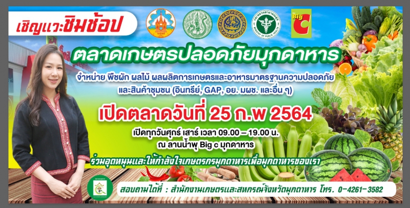 เรียนเชิญทุกท่านร่วมอุดหนุนและให้กำลังใจเกษตรกร ทุกวันศุกร์และวันเสาร์ ณ บิ๊กซี ซูเปอร์เซ็นเตอร์ มุกดาหาร เริ่มตั้งแต่วันที่ 25 กุมภาพันธ์ 2564