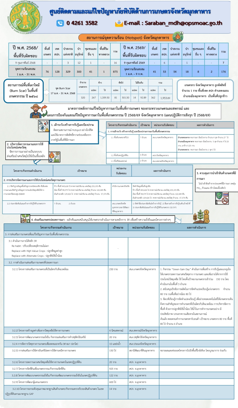 ศูนย์ติดตามและแก้ไขปัญหาภัยพิบัติด้านการเกษตรจังหวัดมุกดาหาร ณ วันที่ 9 กุมภาพันธ์ 2569