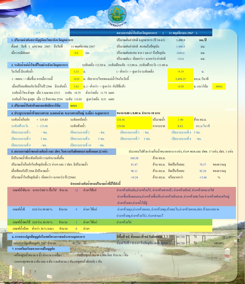 สถานการณ์น้ำในจังหวัดมุกดาหาร ณ วันที่ 11 พฤศจิกายน 2567