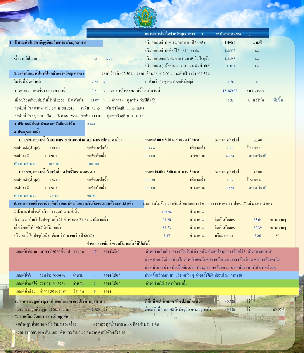 สถานการณ์น้ำในจังหวัดมุกดาหาร ณ วันที่ 25 กันยายน 2568