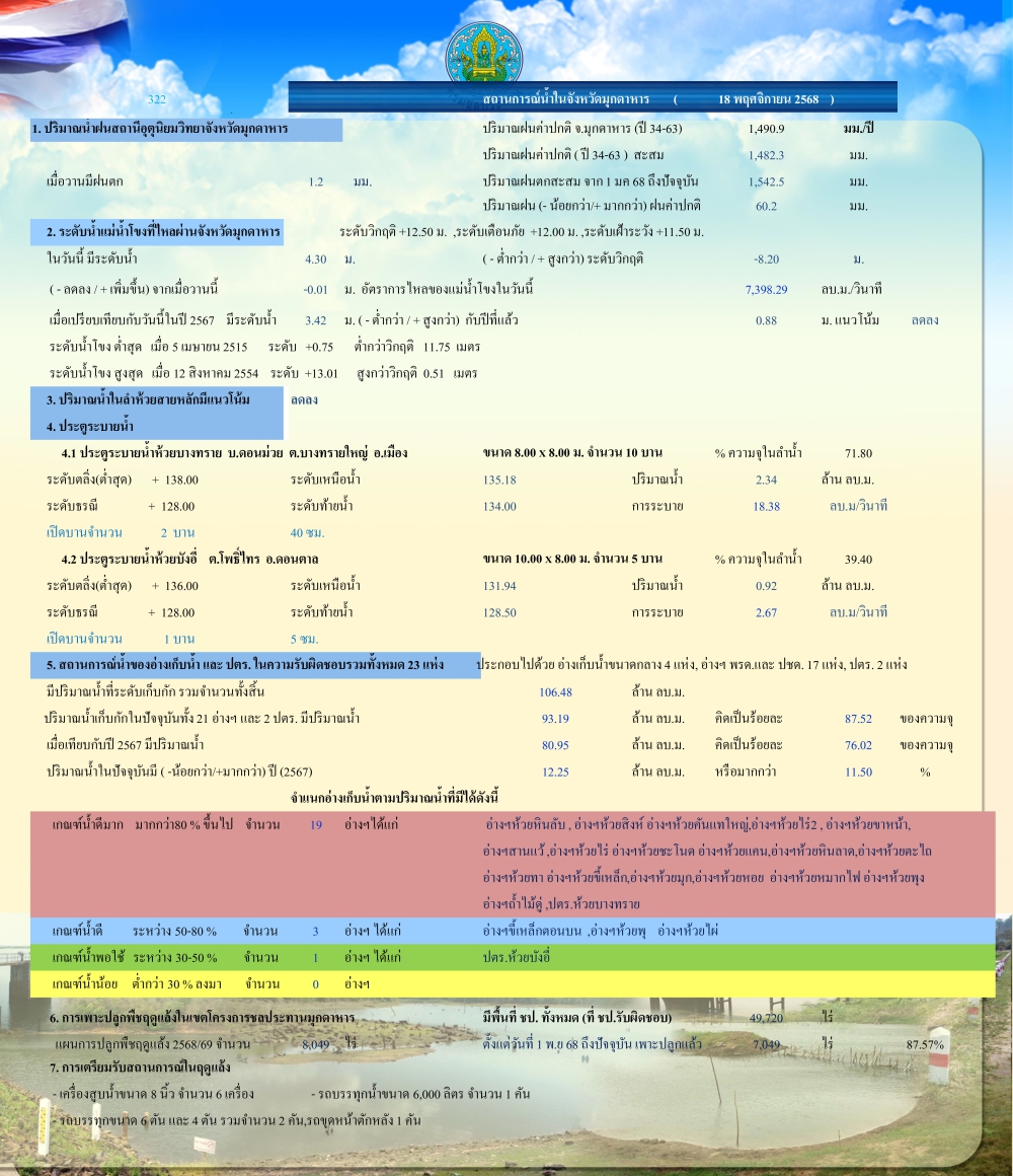 สถานการณ์น้ำในจังหวัดมุกดาหาร ณ วันที่ 18 พฤศจิกายน 2568