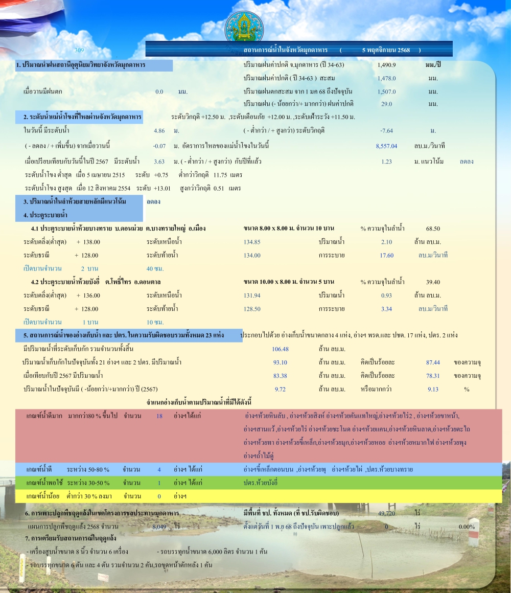 สถานการณ์น้ำในจังหวัดมุกดาหาร ณ วันที่ 5 พฤศจิกายน 2568