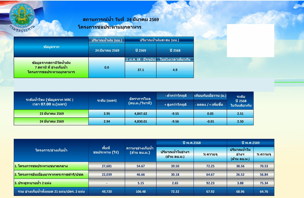 สถานการณ์น้ำในจังหวัดมุกดาหาร ณ วันที่ 24 มีนาคม 2569