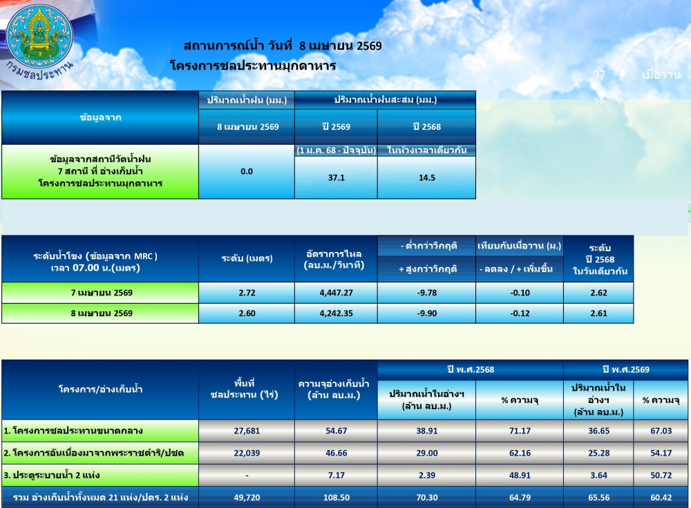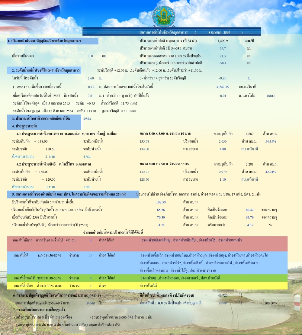สถานการณ์น้ำในจังหวัดมุกดาหาร ณ วันที่ 8 เมษายน 2569