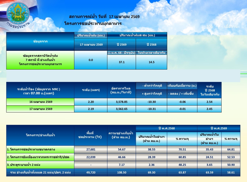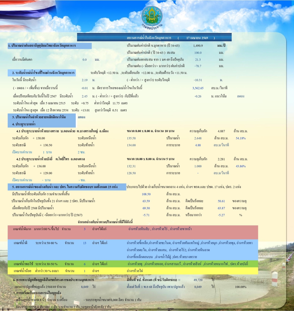 สถานการณ์น้ำในจังหวัดมุกดาหาร ณ วันที่ 17 เมษายน 2569