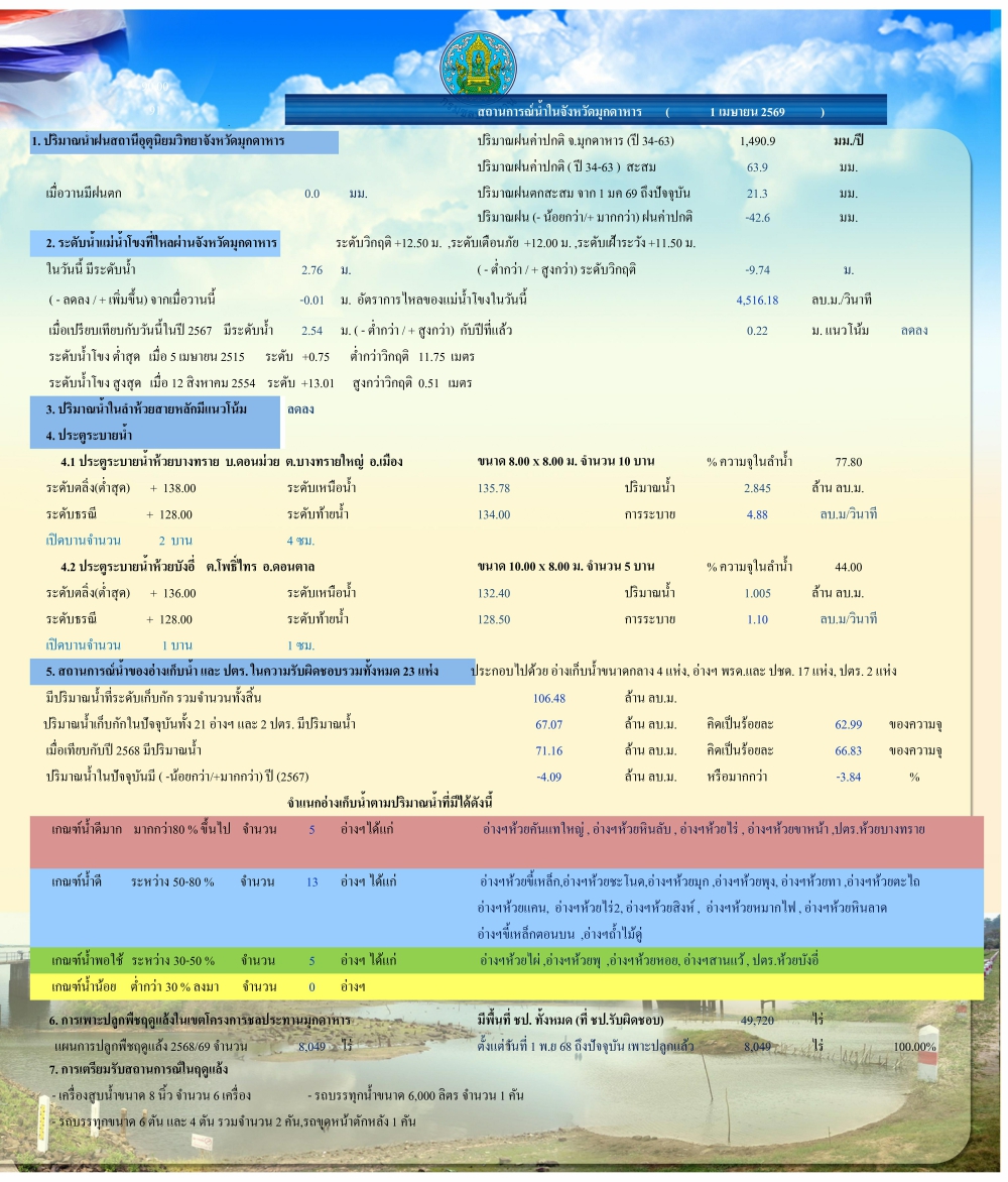 สถานการณ์น้ำในจังหวัดมุกดาหาร ณ วันที่ 1 เมษายน 2569