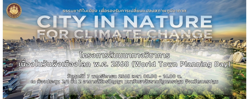 วันที่ 7 พฤศจิกายน พ.ศ. 2568 เวลา 09.00 น . นางสาวเอื้องพร นพคุณ เกษตรและสหกรณ์จังหวัดนครปฐม มอบหมายให้นางสาวโสภาพรรณ ศิริทรัพย์ นักวิเคราะห์นโยบายและแผนชำนาญการ เข้าร่วมการสัมมนาทางวิชาการเนื่องในวันผังเมืองโลก พ.ศ. 2568 (World Town Planning Day) เรื่อง City in Nature for Climate Change ธรรมชาติในเมืองเพื่อรองรับการเปลี่ยนแปลงสภาพภูมิอากาศ โดยมีนายปรีชา ดิลกพรเมธี รองผู้ว่าราชการจังหวัดนครปฐม เป็นประธานเปิดพิธีสัมมนา ณ ห้องประชุม 2/1 ชั้น 2 อาคารสิริวรปัญญา มหาวิทยาลัยราชภัฏนครปฐม