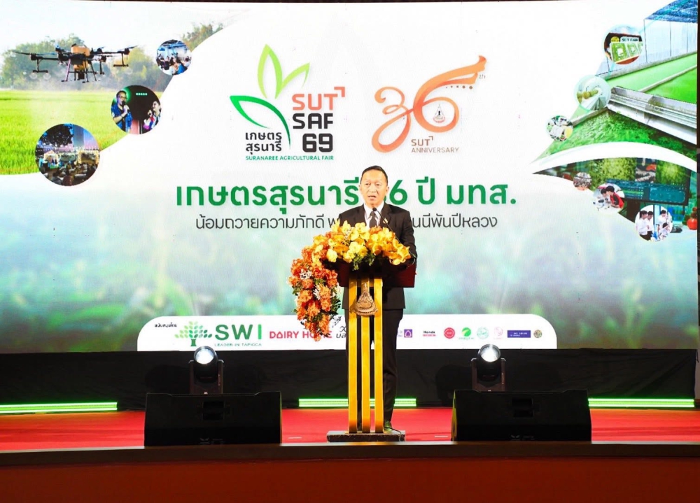วันที่ 9 มกราคม 2569 เวลา 08.30 น. ณ อาคารสุรพัฒน์ 2 มหาวิทยาลัยเทคโนโลยีสุรนารี จังหวัดนครราชสีมา นางสาวณัชชา พันธ์เพ็ง เกษตรเเละสหกรณ์จังหวัดนครราชสีมา มอบหมายให้นางสาวชุติมา อินทะชัย หัวหน้าฝ่ายบริหารทั่วไป ร่วมพิธีเปิดงานเกษตรสุรนารี 69 เพื่อเป็นการเผยแพร่ความรู้ทางวิชาการ ถ่ายทอดเทคโนโลยีการเกษตร นวัตกรรม ที่เหมาะสมสู่พี่น้องเกษตรกร ผู้ประกอบการด้านการเกษตร และประชาชนที่สนใจ ในปีนี้ได้จัดงาน "เกษตรสุรนารี 69" ภายใต้แนวคิด เกษตรสุรนารี 36 ปี มทส. น้อมถวายความภักดี พระบรมราชชนนีพันปีหลวง" ระหว่างวันที่ 9 - 11 มกราคม พ.ศ. 2569 โดยมี นายคณัสชนม์ ศรีเจริญ รองผู้ว่าราชการจังหวัดนครราชสีมา เป็นประธาน