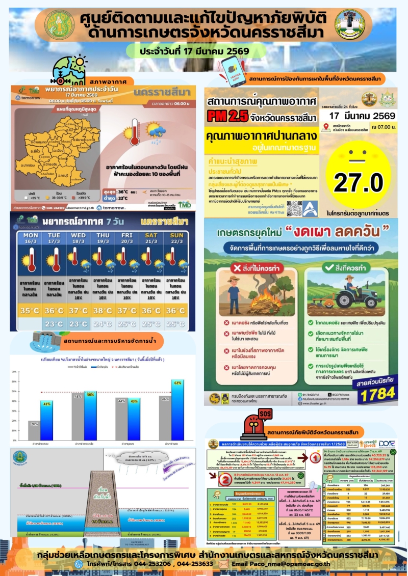 ศูนย์ติดตามและแก้ไขปัญหาภัยพิบัติด้านการเกษตร จ.นม. (17 มี.ค.69)