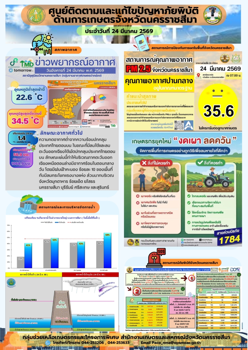 ศูนย์ติดตามและแก้ไขปัญหาภัยพิบัติด้านการเกษตร จ.นม. (24 มี.ค.69)