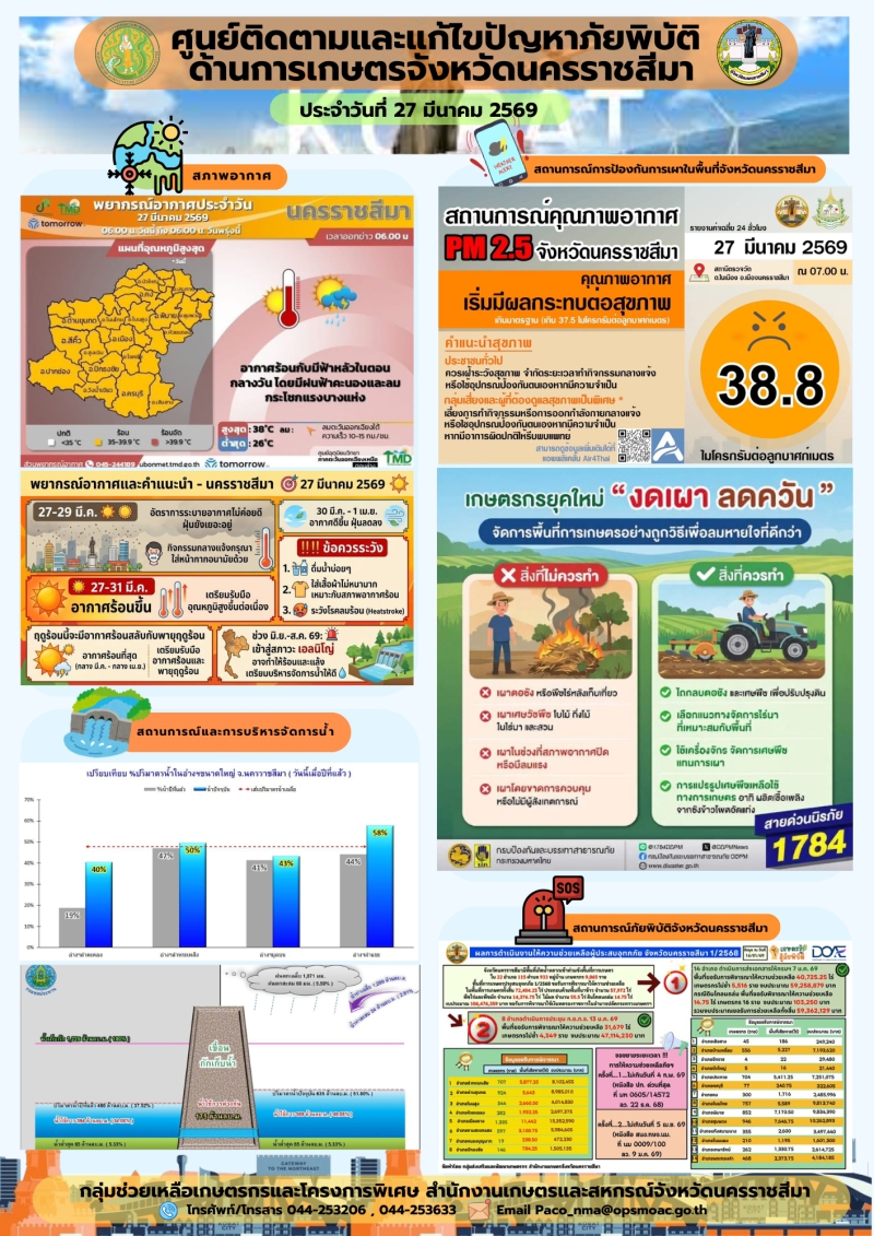 ศูนย์ติดตามและแก้ไขปัญหาภัยพิบัติด้านการเกษตร จ.นม. (27 มี.ค.69)