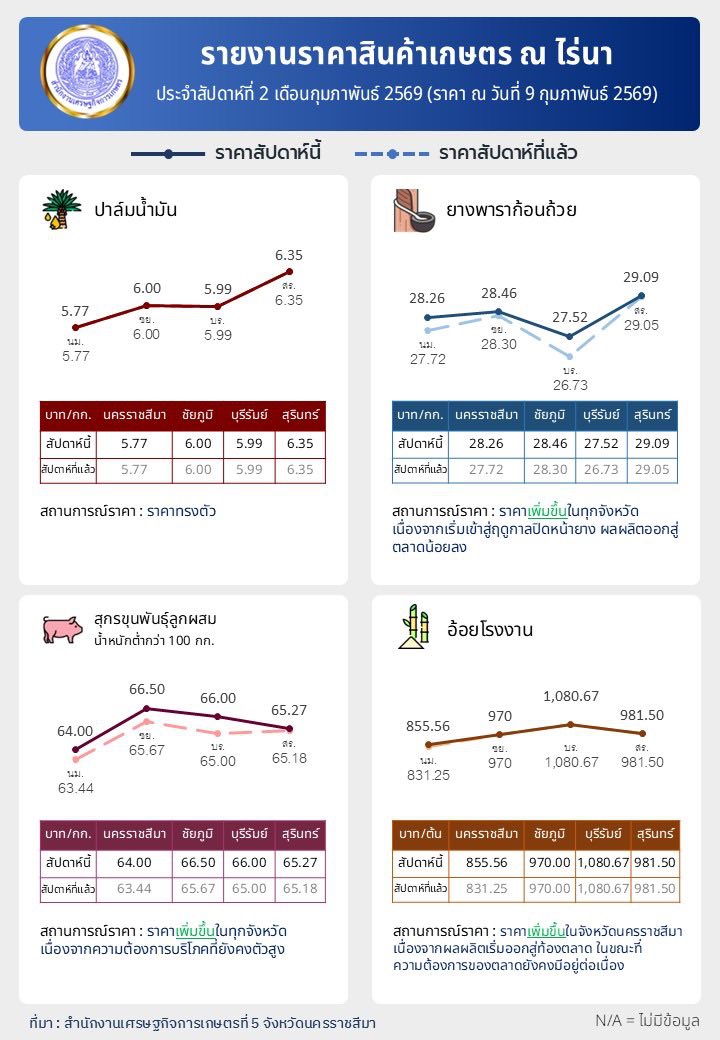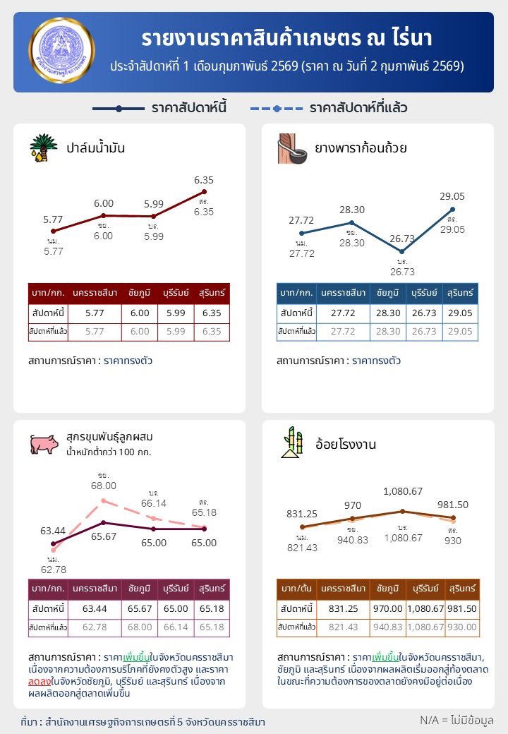 รายงานราคาสินค้าเกษตร ณ ไร่นา ประจำสัปดาห์ เดือนกุมภาพันธ์ 2569