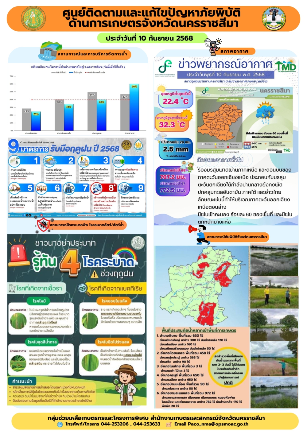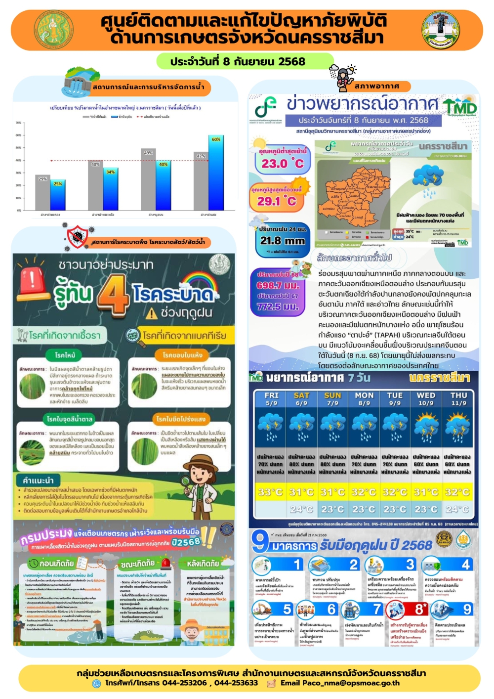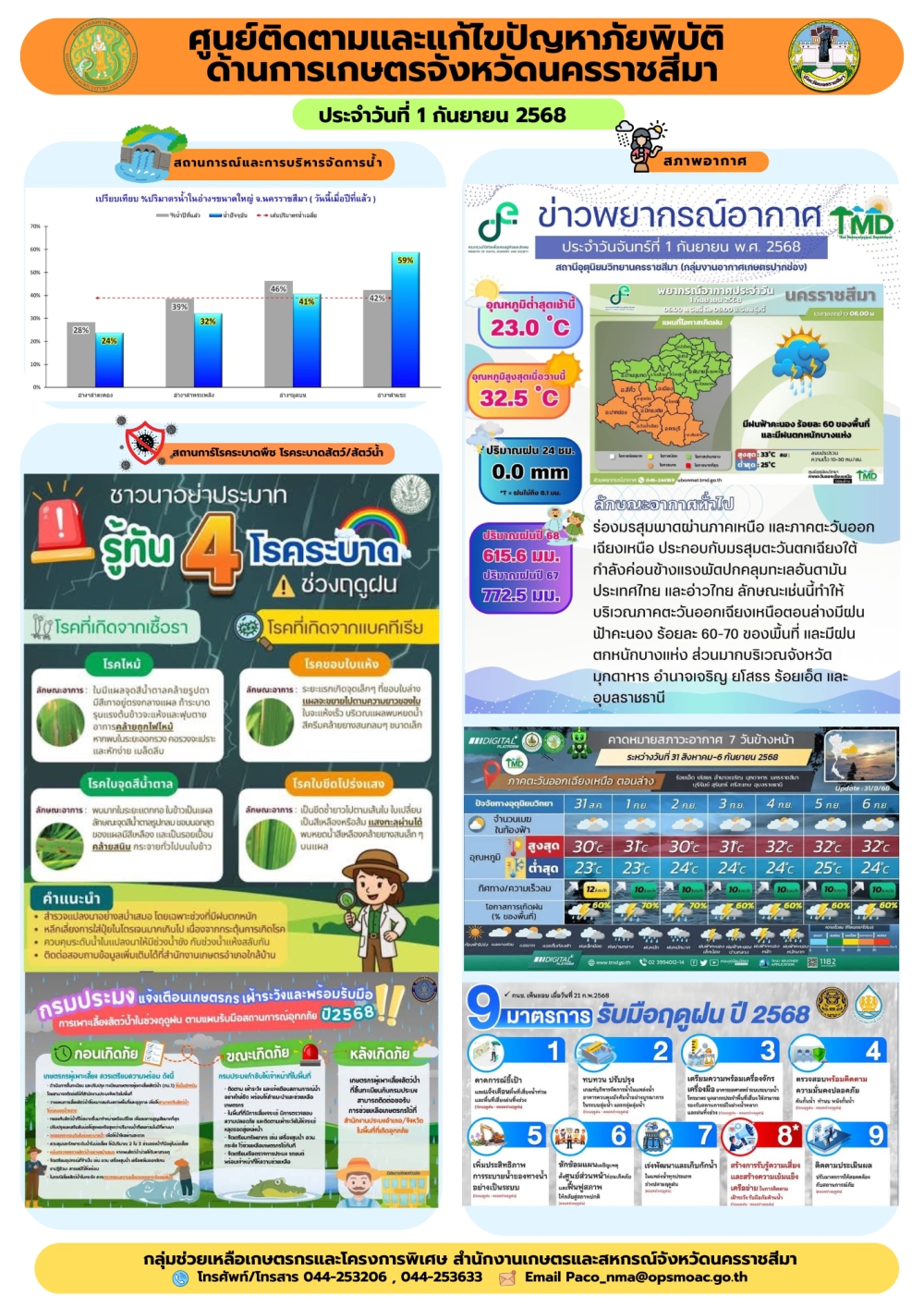 ศูนย์ติดตามและแก้ไขปัญหาภัยพิบัติด้านการเกษตรจังหวัดนครราชสีมา ประจำเดือน กันยายน 2568