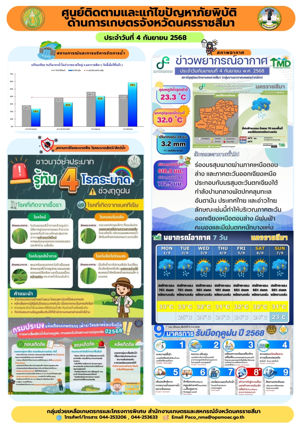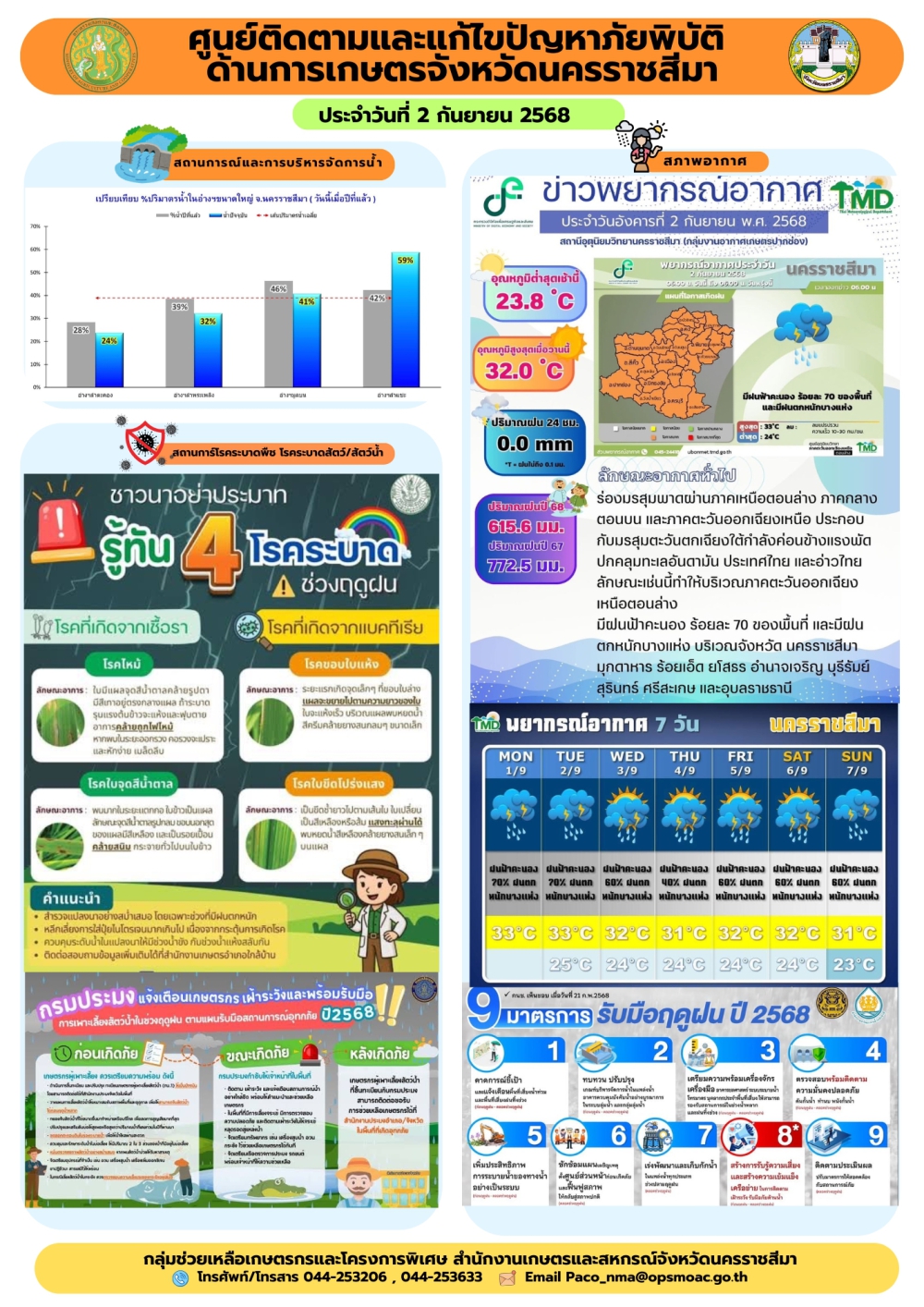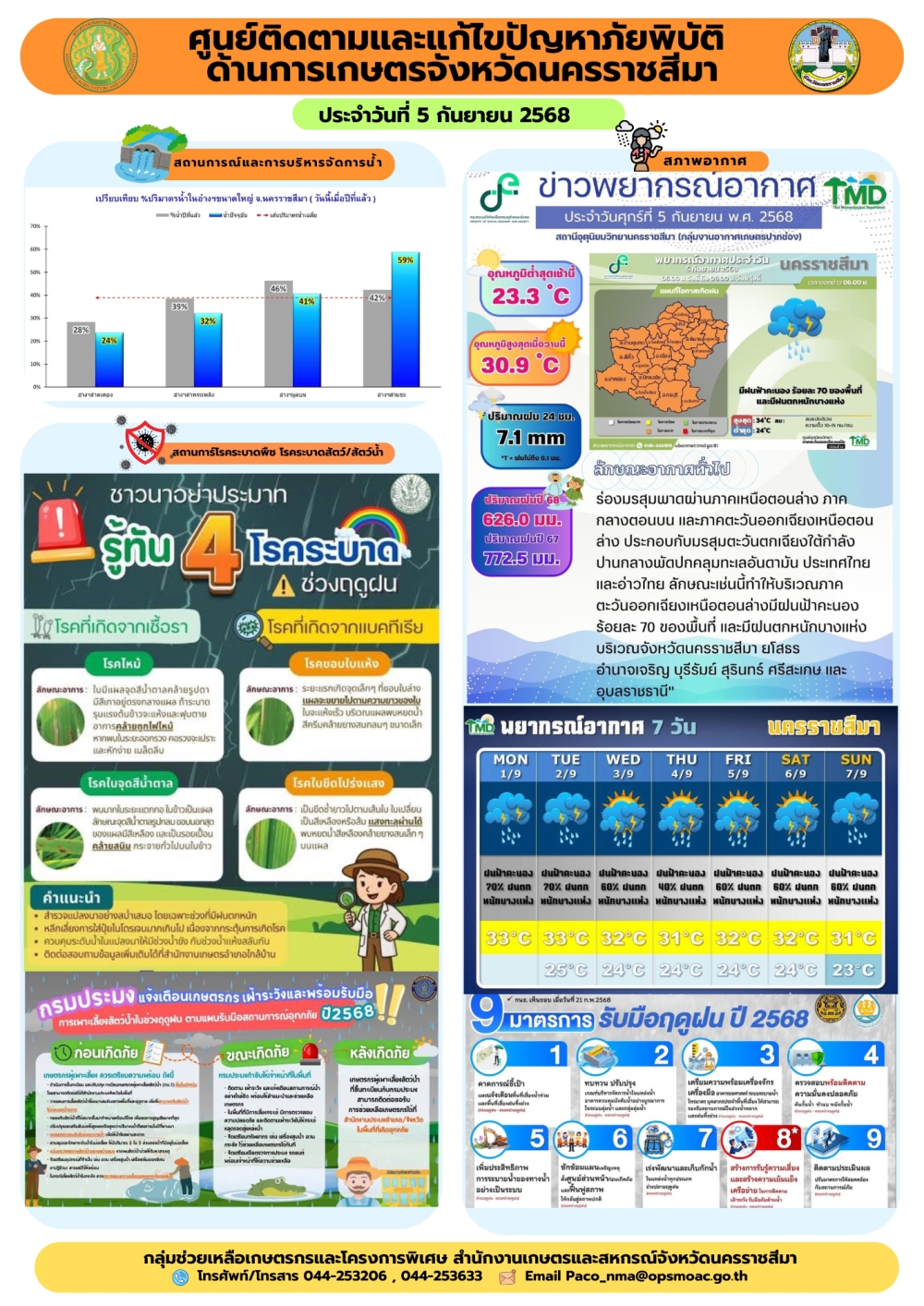 ศูนย์ติดตามและแก้ไขปัญหาภัยพิบัติด้านการเกษตรจังหวัดนครราชสีมา ประจำเดือน กันยายน 2568