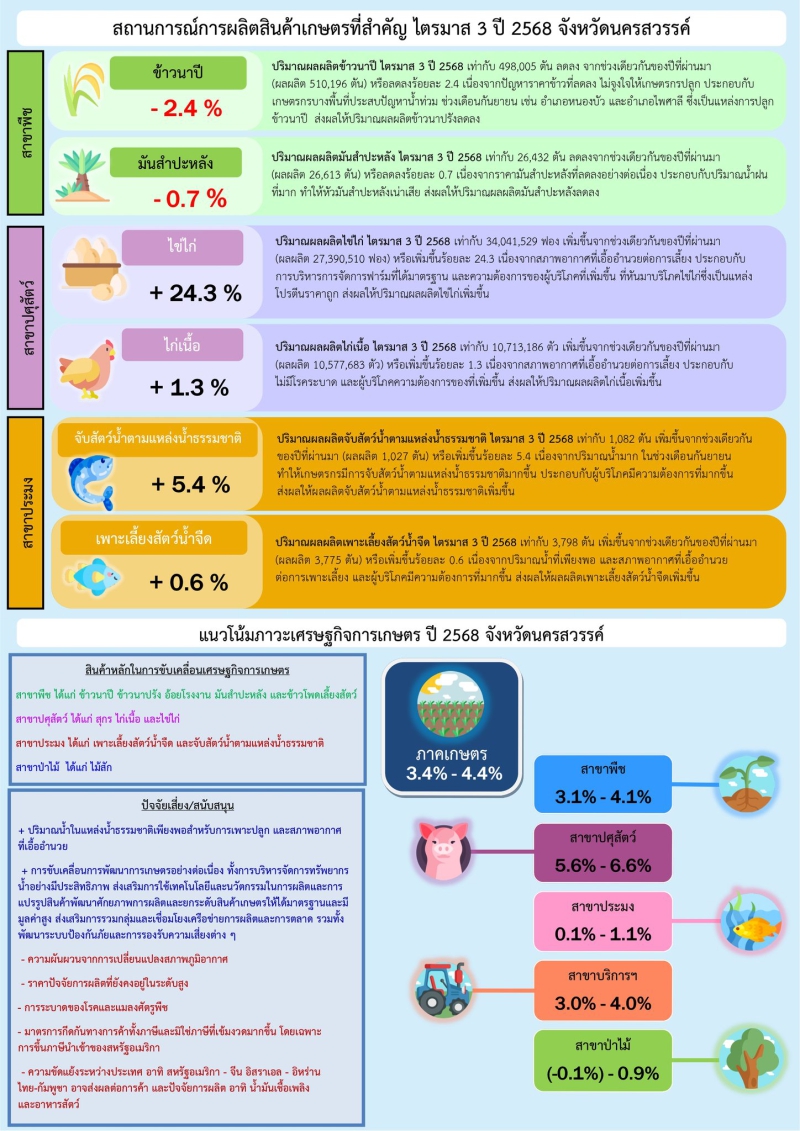 สำนักงานเศรษฐกิจการเกษตรที่ 12 นครสวรรค์ รายงานภาวะเศรษฐกิจการเกษตร ไตรมาส 3 ปี 2568 และแนวโน้ม ปี 2568 จังหวัดนครสวรรค์