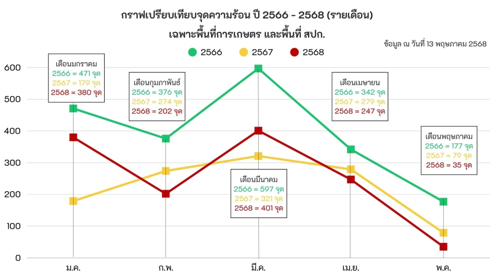รายงานสถานการณ์จุดความร้อน ประจำวันที่ 13 พฤษภาคม 2568