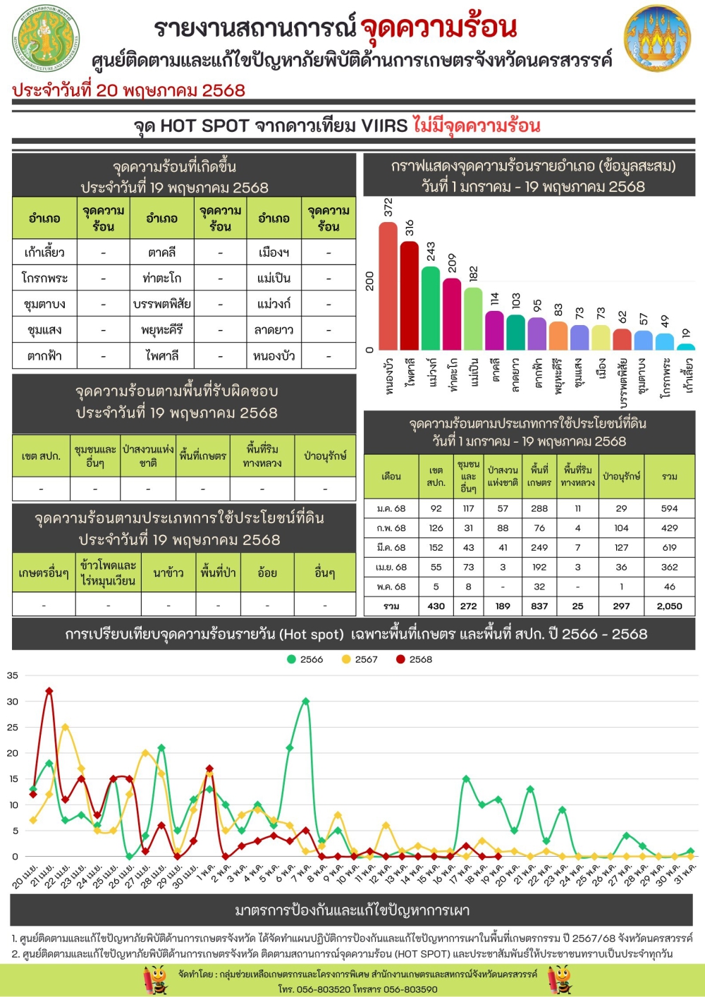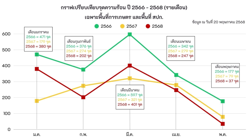 รายงานสถานการณ์จุดความร้อน ประจำวันที่ 20 พฤษภาคม 2568
