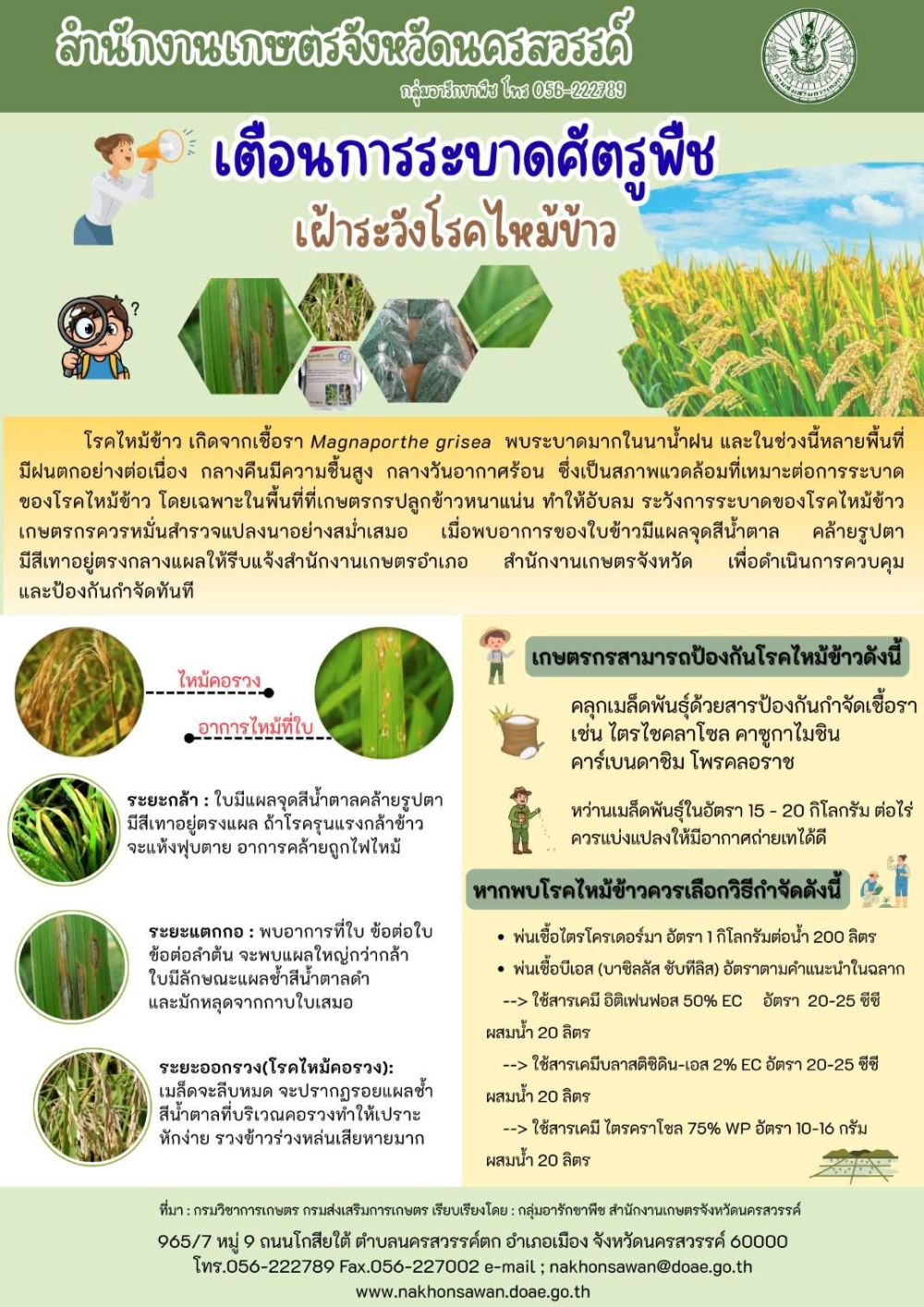 สำนักงานเกษตรจังหวัดนครสวรรค์ แจ้งเตือนการระบาดศัตรูพืช