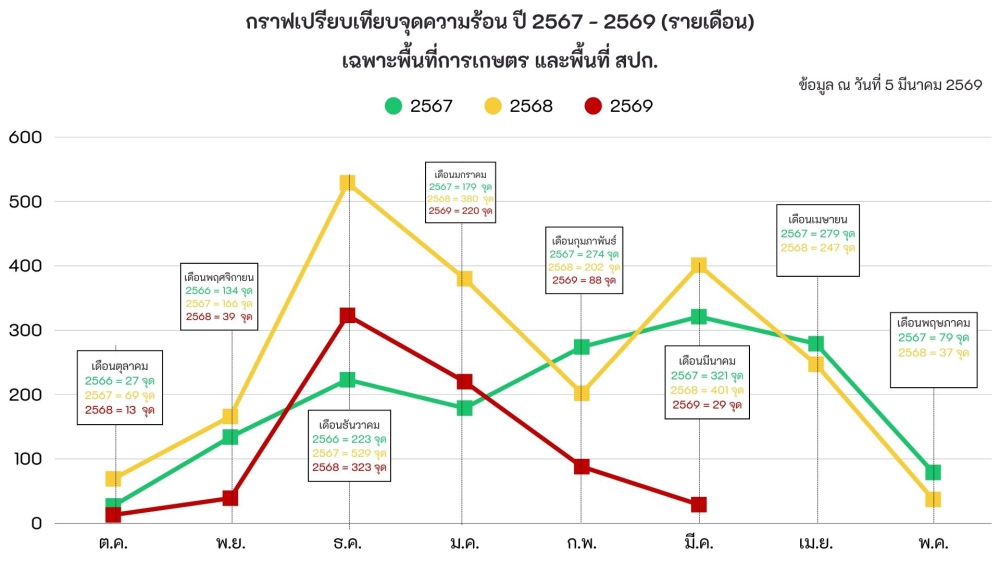 รายงานสถานการณ์จุดความร้อน ประจำวันที่ 5 มีนาคม 2569