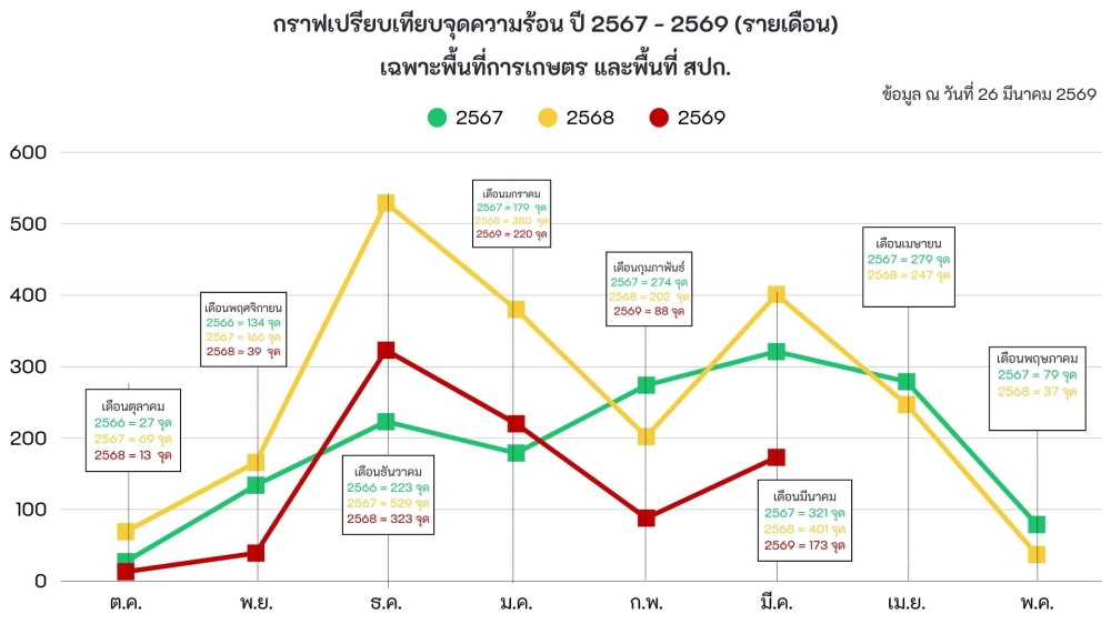 รายงานสถานการณ์จุดความร้อน ประจำวันที่ 26 มีนาคม 2569