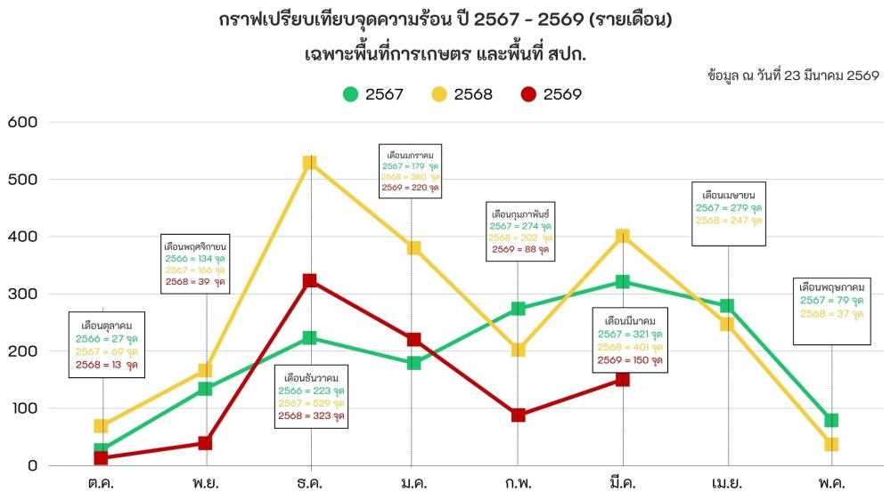 รายงานสถานการณ์จุดความร้อน ประจำวันที่ 23 มีนาคม 2569
