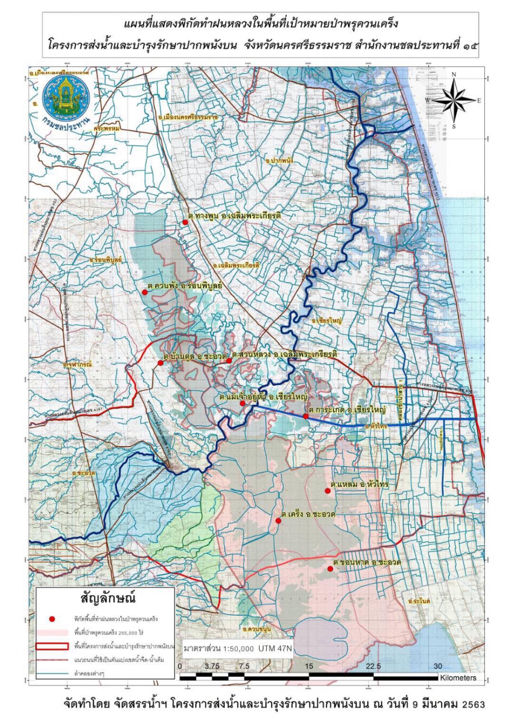 ในส่วนของศูนย์ปฎิบัติการฝนหลวงภาคใต้ จังหวัดสุราษฎร์ธานี ได้เริ่มปฎิบัติการทำฝนหลวงในพื้นที่ ตั้งแต่วันที่ 3 ก.พ.63 และได้รับการแจ้งพื้นที่เป้าหมายพร้อมพิกัด GPS ในการเพิ่มระดับน้ำเพื่อรักษาความชุ่มชื้นในพื้นที่ป่าพรุควนเคร็งตามการขอรับสนับสนุนจากสำนักบริหารพื้นที่อนุรักษ์ที่ 5 (นครศรีธรรมราช) ทั้งนี้ได้ออกบินปฎิบัติการในพื้นที่ป่าพรุควนเคร็งทันทีเมื่อมีสภาพอากาศที่เหมาะสม