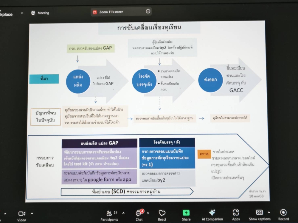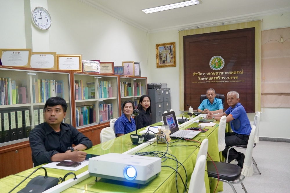 วันที่ 18 เมษายน 2568 เวลา 09.30 น. นายกิตติรัตน์ ชูแสง เกษตรและสหกรณ์จังหวัดนครศรีธรรมราช พร้อมด้วยผู้แทน จากสำนักงานเกษตรจังหวัดนครศรีธรรมราช ศูนย์วิจัยและพัฒนาการเกษตรนครศรีธรรมราช และเจ้าหน้าที่ที่เกี่ยวข้อง เข้าร่วมประชุมติดตามความก้าวหน้าผลการดำเนินงานของกระทรวงเกษตรและสหกรณ์ ผ่านระบบออนไลน์ Zoom meeting ณ ห้องประชุมสำนักงานเกษตรและสหกรณ์จังหวัดนครศรีธรรมราช ชั้น 4 ศาลากลางจังหวัดนครศรีธรรมราช อำเภอเมือง จังหวัดนครศรีธรรมราช เพื่อติดตาม ความก้าวหน้าผลการดำเนินงาน (ทุเรียน) ในพื้นที่ 14 จังหวัดภาคใต้ โดยมี นายอภัย สุทธิสังข์ รองปลัดกระทรวงเกษตรและสหกรณ์ เป็นประธานการประชุม
