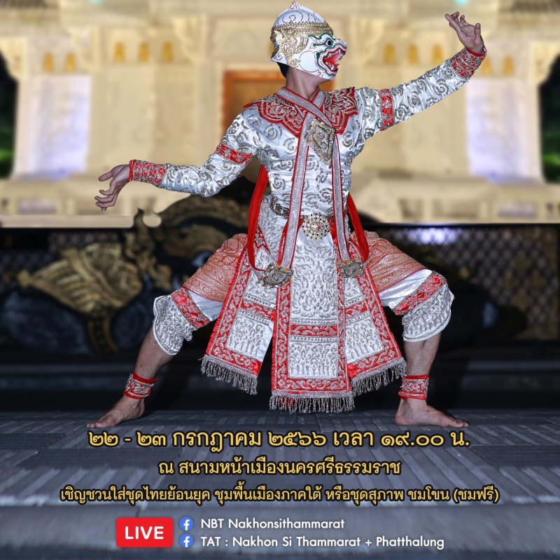 ขอเชิญชวนเข้าชมการแสดงโขนพระราชทาน จังหวัดนครศรีธรรมราช ในระหว่างวันที่ 22 - 23 กรกฎาคม 2566 เวลา 19.00 น. - 21.00 น.