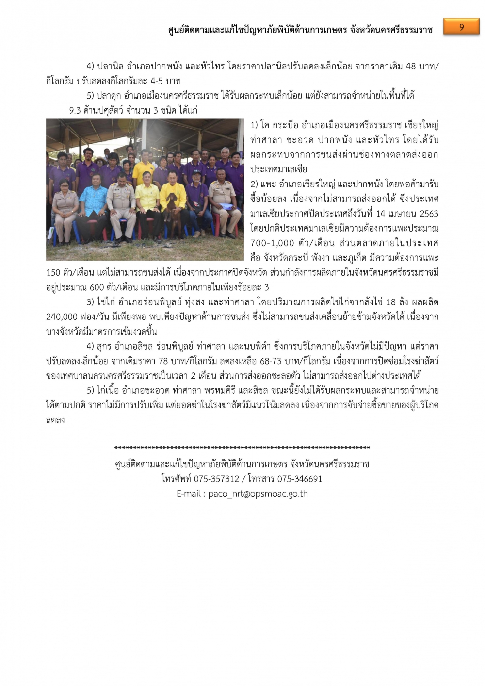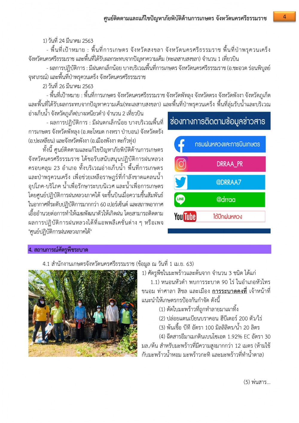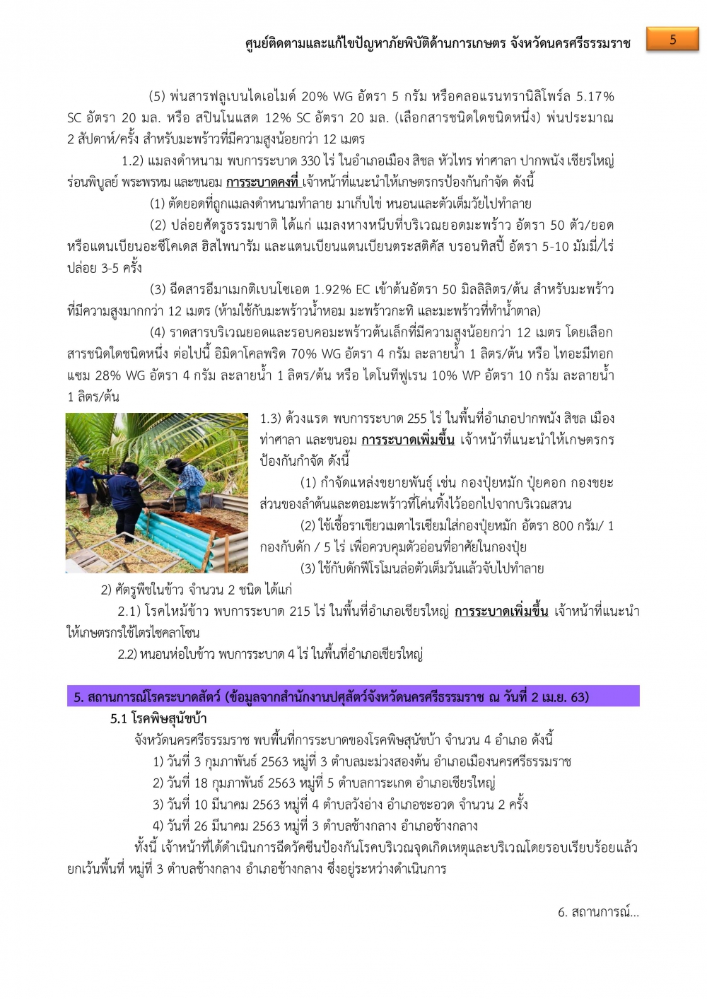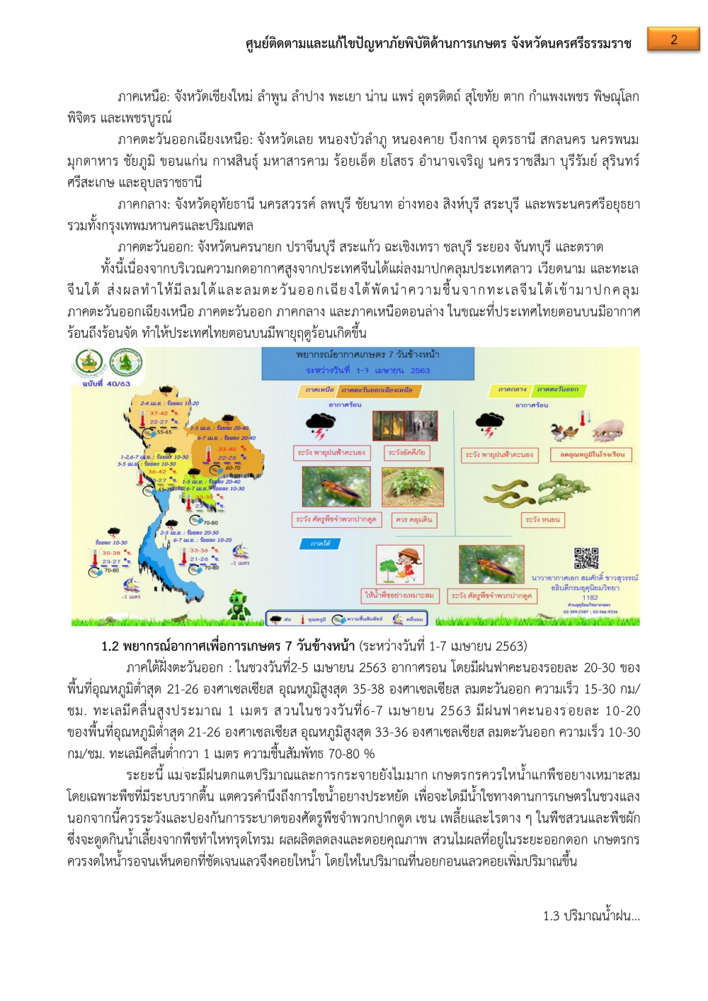 ศูนย์ฯภัยพิบัติด้านการเกษตร จ.นครศรีธรรมราช ขอรายงานสถานการณ์ประจำวันที่ 3 เม.ย.63 ดังนี้