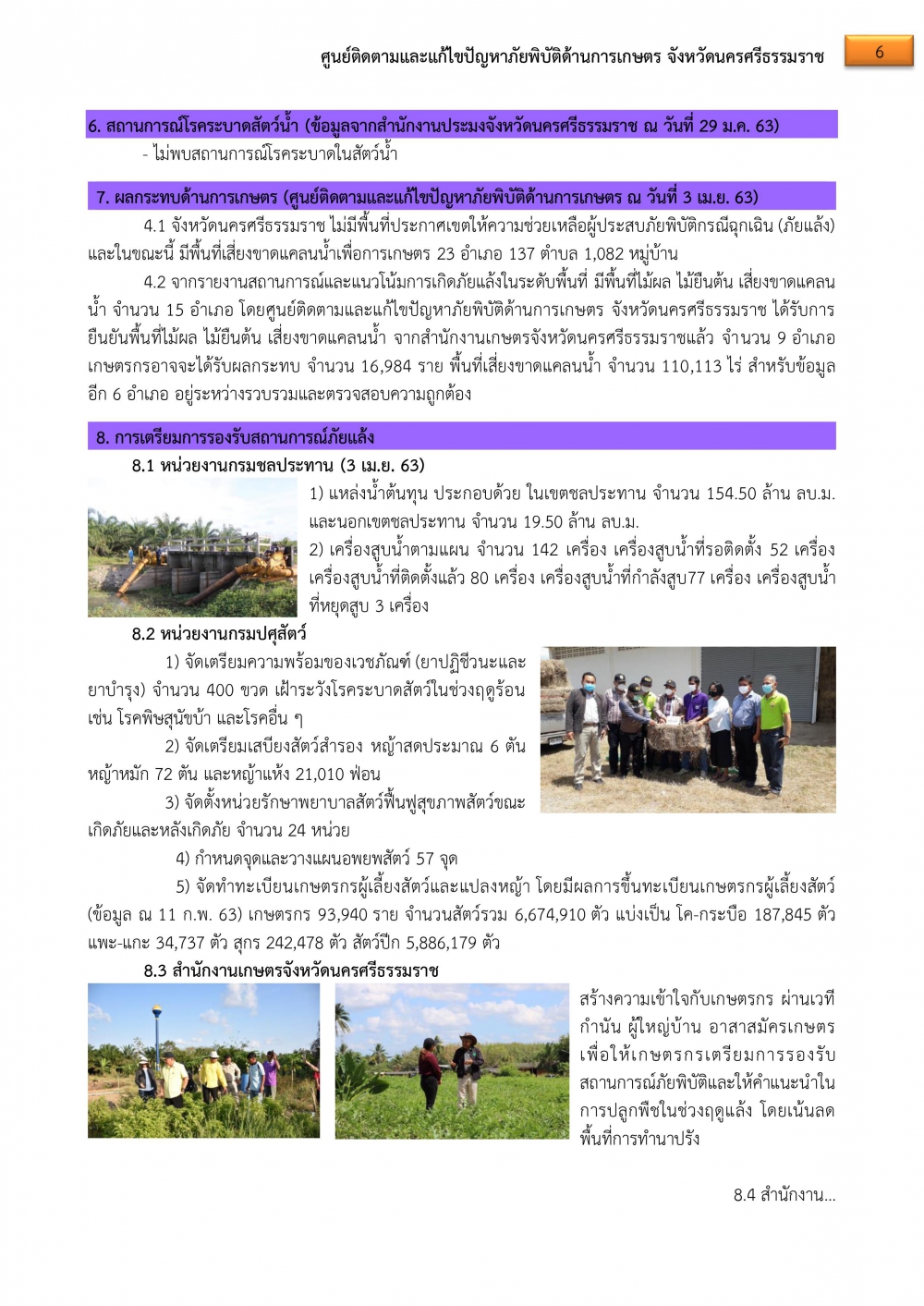 5. ปัจจุบัน จังหวัดนครศรีธรรมราช ยังไม่มีพื้นที่ประกาศเขตให้ความช่วยเหลือผู้ประสบภัยพิบัติกรณีฉุกเฉิน (ภัยแล้ง)