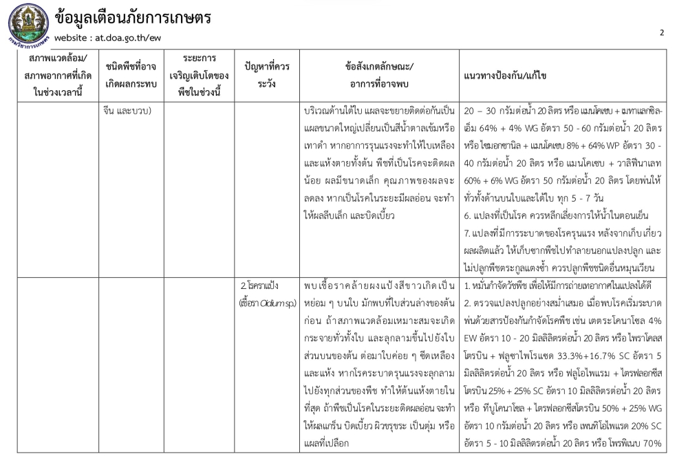 แจ้งเตือนภัยการเกษตร ในระหว่างวันที่ 4 - 17 กุมภาพันธ์ 2569