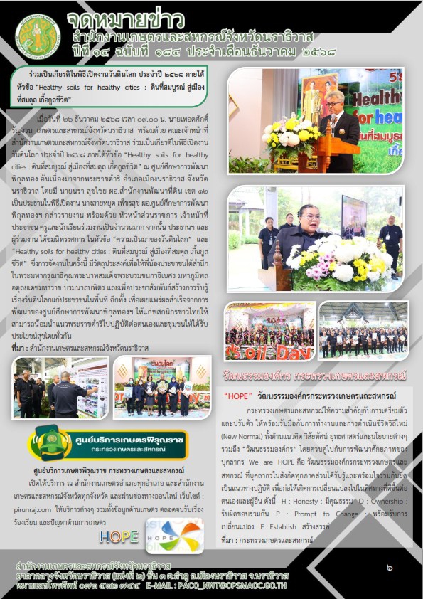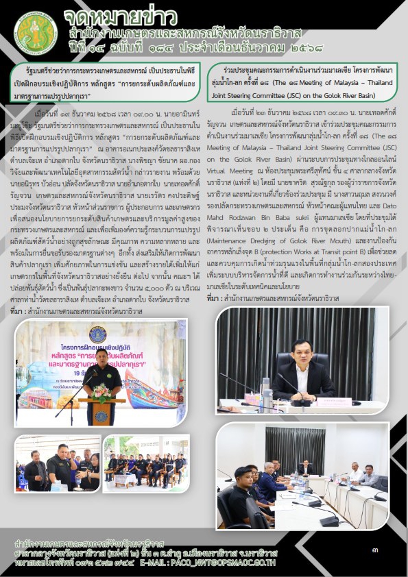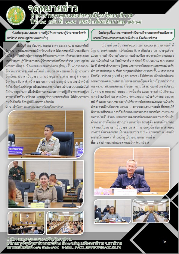 จดหมายข่าวสำนักงานเกษตรและสหกรณ์จังหวัดนราธิวาสประจำเดือนธันวาคม พ.ศ.2568