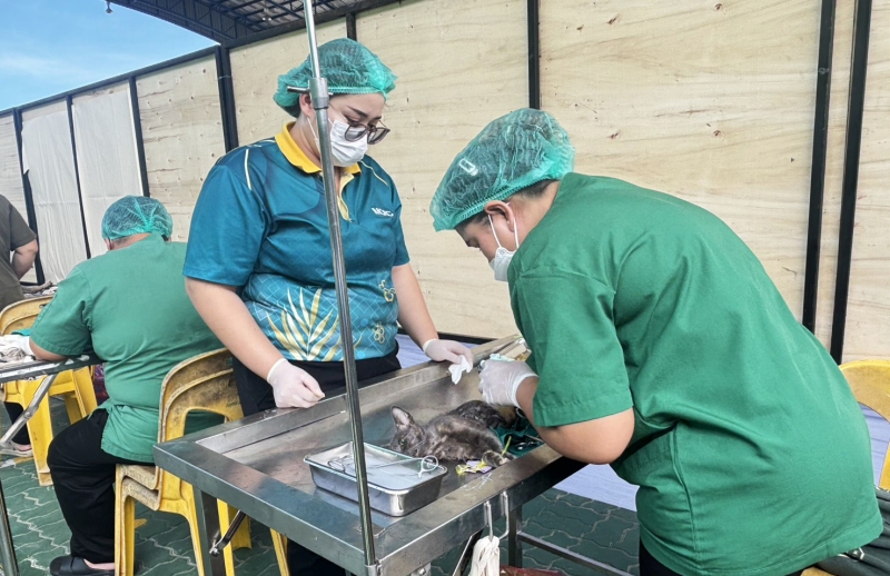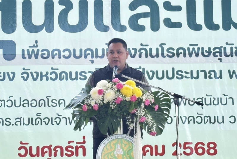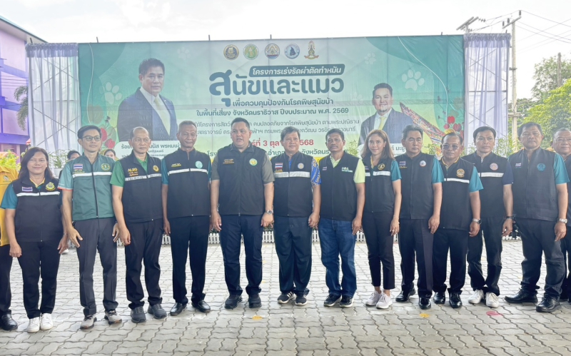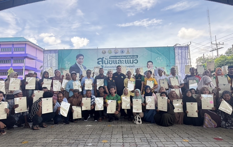 วันนี้ (3 ตุลาคม 2568) เวลา 10.00 น. นายเทอดศักดิ์ รัญจวน เกษตรและสหกรณ์จังหวัดนราธิวาส พร้อมด้วย หัวหน้าส่วนราชการสังกัดกระทรวงเกษตรและสหกรณ์ในจังหวัดนราธิวาส และส่วนราชการที่เกี่ยวข้องในจังหวัดนราธิวาส ร่วมต้อนรับรัฐมนตรีช่วยว่าการกระทรวงเกษตรและสหกรณ์ (นายอามินทร์ มะยูโซ๊ะ) ณ โรงเรียนนราสิกขาลัย อำเภอเมืองนราธิวาส จังหวัดนราธิวาส โดยมี รัฐมนตรีช่วยว่าการกระทรวงเกษตรและสหกรณ์ (นายอามินทร์ มะยูโซ๊ะ) เป็นประธานเปิดโครงการเร่งรัดผ่าตัดทำหมันสุนัขและแมวเพื่อควบคุมโรคพิษสุนัขบ้าในพื้นที่เสี่ยง นายวีรพัฒน์ บุณฑริก รองผู้ว่าราชการจังหวัดนราธิวาส กล่าวต้อนรับ นายสัตวแพทย์บุญญกฤช ปิ่นประสงค์ รองอธิบดีกรมปศุสัตว์ กล่าวรายงาน พร้อมด้วย ผู้บริหาร อธิบดีกรม ผู้ตรวจกรม ผู้ตรวจเขต หัวหน้าส่วนราชการ เจ้าหน้าที่ และประชาชนในพื้นที่ร่วมโครงการเป็นจำนวนมาก ซึ่ง ประธานฯ ให้เกียรติมอบโฉนดเพื่อการเกษตร จำนวน 61 ราย มอบ ส.ป.ก. 4-01 จำนวน 41 ราย มอบพันธุ์ไม้ จำนวน 102 ราย มอบโฉนดต้นยางพารา จำนวน 100 ราย มอบตันพันธุ์และเมล็ดพันธุ์พืชผักสวนครัว จำนวน 100 ชุด มอบพันธุ์ปลากินพืช จำนวน 70 ถุง มอบป้ายโครงการงานจัดระบบอนุรักษ์ดินและน้ำเพื่อเกษตรผสมผสานภายใต้โครงการตากใบโมเดล จำนวน 10 ราย มอบไข่ไก่ จำนวน 5,000 ฟอง และอาหารสุนัข/แมว จำนวน 500 ชุด มอบถุงยังชีพ จำนวน 150 ชุด และมอบข้าวสาร จำนวน 1,000 ชุด จากนั้น ได้เยี่ยมชมกิจกรรมการผ่าตัดทำหมัน ฉีดวัคซีนป้องกันโรคพิษสุนัขบ้านในสัตว์ และเยี่ยมชมนิทรรศการของส่วนราชการในจังหวัดนราธิวาส