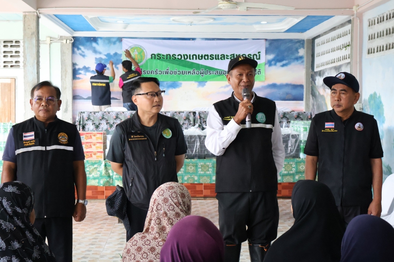 วันนี้ (26 พฤศจิกายน 2568) เวลา 10.30 น. นายธิติ โลหะปิยะพรรณ ผู้ตรวจราชการกระทรวงเกษตรและสหกรณ์ เขตตรวจราชการที่ 7 พร้อมด้วย นายเทอดศักดิ์ รัญจวน เกษตรและสหกรณ์จังหวัดนราธิวาส ปศุสัตว์จังหวัดนราธิวาส ผู้อำนวยการสถานีพัฒนาที่ดินนราธิวาส ผู้อำนวยการศูนย์หม่อนไหมเฉลิมพระเกียรติฯ นราธิวาส ผู้แทนปฏิรูปที่ดินจังหวัดนราธิวาส นายอำเภอยี่งอ เกษตรอำเภอยี่งอ และส่วนราชการที่เกี่ยวข้อง ลงพื้นที่ติดตามสถานการณ์อุทกภัยและช่วยเหลือประชาชนที่ได้รับผลกระทบจากอุทกภัย ณ มัสยิดดารุลอิสลามียะห์ ละหาร หมู่ที่ 1 ตำบลละหาร อำเภอยี่งอ จังหวัดนราธิวาส โดยมอบอาหารเป็นข้าวกล่อง จำนวน 400 กล่อง น้ำดื่ม จำนวน 400 ขวด บะหมี่กึ่งสำเร็จรูป จำนวน 270 ซอง พร้อมทั้งได้สนับสนุนเสบียงอาหารสัตว์ หญ้าแห้ง จำนวน 120 ก้อน และหญ้าหมัก จำนวน 15 ก้อน ให้แก่เกษตรกรและประชาชนที่ประสบภัยในพื้นที่ รวมทั้งประชาสัมพันธ์การช่วยเหลือด้านการเกษตร ทั้งด้านพืช ประมงและปศุสัตว์ รวมทั้งให้กำลังใจประชาชนในพื้นที่ จากนั้น นายธิติ โลหะปิยะพรรณ ผู้ตรวจราชการกระทรวงเกษตรและสหกรณ์ เขตตรวจราชการที่ 7 พร้อมคณะ ลงพื้นที่นำอาหาร น้ำดื่ม ยาเวชภัณฑ์ไปมอบให้แก่ประชาชนผู้ประสบภัยที่อาศัยอยู่ตามบ้านเรือนในพื้นที่ตำบลละหาร ตลอดจนนำหญ้าหมักไปมอบให้เกษตรกรที่เลี้ยงสัตว์ในพื้นที่ประสบอุทกภัยอีกด้วย