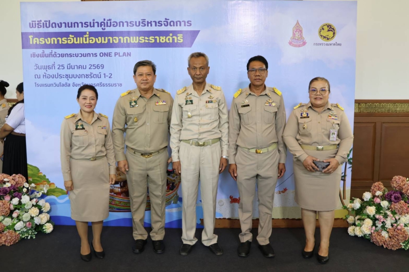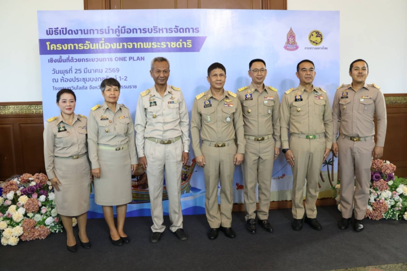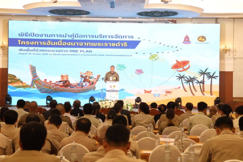 วันนี้ (25 มีนาคม 2569) เวลา 10.00 น. นายเทอดศักดิ์ รัญจวน เกษตรและสหกรณ์จังหวัดนราธิวาส เข้าร่วมพิธีเปิดงานการนำคู่มือการบริหารจัดการโครงการอันเนื่องมาจากพระราชดำริเชิงพื้นที่ด้วยกระบวนการ One Plan มาสนับสนุนการดำเนินงานโครงการอันเนื่องมาจากพระราชดำริ เขตพื้นที่ภาคใต้ ณ โรงแรมทวิน โลตัส อำเภอเมืองนครศรีธรรมราช จังหวัดนครศรีธรรมราช โดยมี นายพลากร สุวรรณรัฐ องคมนตรี กล่าวเปิดงาน นายสมชาย ลีหล้าน้อย ผู้ว่าราชการจังหวัดนครศรีธรรมราช กล่าวต้อนรับ นางสุพร ตรีนรินทร์ เลขาธิการสำนักงานคณะกรรมการพิเศษเพื่อประสานงานโครงการอันเนื่องมาจากพระราชดำริ (กปร.) กล่าววัตถุประสงค์การจัดงานฯ พร้อมด้วย นายบุญช่วย หอมยามเย็น ผู้ว่าราชการจังหวัดนราธิวาส หัวหน้าส่วนราชการเข้าร่วมพิธีเปิดงาน พร้อมกันนี้ เกษตรและสหกรณ์จังหวัดนราธิวาส มอบหมายให้ นางจรรยพร สิริภูวดล หัวหน้ากลุ่มช่วยเหลือเกษตรกรและโครงการพิเศษ เข้าร่วมพิธีเปิดงานฯ ผ่านระบบออนไลน์ ณ ห้องประชุมพระภิศัยสุนทรการ ชั้น 4 ศาลากลางจังหวัดนราธิวาส (แห่งที่ 2) อำเภอเมืองนราธิวาส จังหวัดนราธิวาส โดยมี นายชาคริต สุรณัฐกุล รองผู้ว่าราชการจังหวัดนราธิวาส เป็นประธาน พร้อมด้วยหัวหน้าส่วนราชการ ผู้แทนหน่วยงานและเจ้าหน้าที่ที่รับผิดชอบงานโครงการอันเนื่องมาจากพระราชดำริเข้าร่วมรับชมพิธีเปิดงานฯ โดยคณะกรรมการฯ ของจังหวัด และคณะทำงานฯ ของอำเภอในพื้นที่ภาคใต้ 14 จังหวัด แสดงคู่มือฯ ที่ได้รับมอบผ่านระบบออนไลน์ เพื่อเป็นสัญลักษณ์ในการรับมอบคู่มือฯ และดำเนินการขับเคลื่อนในจังหวัดต่อไป องคมนตรีและคณะ เยี่ยมชมนิทรรศการการประสานแผนพัฒนาพื้นที่ด้วยกระบวนการ One Plan ในการขับเคลื่อนโครงการอันเนื่องมาจากพระราชดำริ จาก 2 จังหวัดนำร่อง พื้นที่ภาคใต้ ได้แก่ จังหวัดนราธิวาส และจังหวัดนครศรีธรรมราช จากนั้น ผู้แทนกระทรวงมหาดไทย ชี้แจงกระบวนการและกลไกของการบริหารจัดการโครงการอันเนื่องมาจากพระราชดำริ โดยนำระบบ One Plan มาสนับสนุนการดำเนินงานฯ เวลา 13.30 น. ผู้แทนจังหวัดนครศรีธรรมราช ผู้แทนจังหวัดนราธิวาส และผู้แทนคณะทำงานกำกับและติดตามการขับเคลื่อนโครงการอันเนื่องมาจากพระราชดำริแบบบูรณาการเชิงพื้นที่ ร่วมเสวนาในหัวข้อ “ถอดบทเรียนความสำเร็จการบริหารจัดการโครงการฯ เชิงพื้นที่ด้วยกระบวนการ One Plan” จากนั้น ผู้แทนสำนักงาน กปร. นำเสนอผลสำเร็จของการนำกระบวนการ One Plan มาขับเคลื่อนโครงการอันเนื่องมาจากพระราชดำริ เพื่อให้จังหวัดขับเคลื่อนการดำเนินงานและขยายผลโครงการอันเนื่องมาจากพระราชด