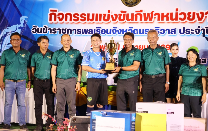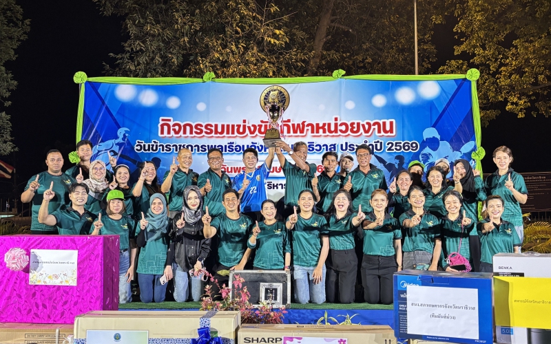 วันนี้ (1 เมษายน 2569) เวลา 13.30 น. นายเทอดศักดิ์ รัญจวน เกษตรและสหกรณ์จังหวัดนราธิวาส พร้อมด้วย หัวหน้าส่วนราชการสังกัดกระทรวงเกษตรและสหกรณ์ในจังหวัดนราธิวาส ข้าราชการและเจ้าหน้าที่ ร่วมกิจกรรมการแข่งขันกีฬาหน่วยงานในวันข้าราชการพลเรือนจังหวัดนราธิวาส ประจำปี 2569 ณ สนามกีฬาองค์การบริหารส่วนจังหวัดนราธิวาส อำเภอเมืองนราธิวาส โดยมี นายบุญช่วย หอมยามเย็น ผู้ว่าราชการจังหวัดนราธิวาส เป็นประธานในพิธีเปิดงาน มีวัตถุประสงค์เพื่อส่งเสริมและพัฒนาบุคลากรในหน่วยงานทุกกระทรวงในจังหวัดนราธิวาส ใช้กิจกรรมกีฬาและนันทนาการเป็นสื่อในการพัฒนาสุขภาพพลานามัยให้แข็งแตง สมบูรณ์ สามารถปฏิบัติหน้าที่ได้อย่างมีประสิทธิภาพ ตลอดจนเป็นการสร้างความสัมพันธ์ที่ดีต่อกันระหว่างหน่วยงาน โดยมีหน่วยงานต่างๆ ในจังหวัด ได้แบ่งเป็น 7 สี ได้แก่ สีน้ำเงิน กระทรวงมหาดไทย /สีฟ้า กระทรวงสาธารณสุข /สีชมพู กระทรวงศึกษาธิการ มหาวิทยาลัยนราธิวาสราชนครินทร์ สำนักงานส่งเสริมการเรียนรู้ วิทยาลัยชุมชน /สีเขียว กระทรวงเกษตรและสหกรณ์ /สีเหลือง รวมกระทรวงกระทรวงพาณิชย์ กระทรวงอุตสาหกรรม คมนาคม การคลัง กระทรวงดิจิทัลเพื่อเศรษฐกิจและสังคม /สีม่วง กระทรวงแรงงาน กระทรวงการท่องเที่ยวและกีฬาสำนักนายกรัฐมนตรี กระทรวงพัฒนาสังคมและความมั่นคงของมนุษย์ /และ สีแดง กระทรวงทรัพยากรธรรมชาติและสิ่งแวดล้อมกระทรวงยุติธรรม วัฒนธรรมสำนักพระพุทธศาสนาพลังงาน โดยการแข่งขัน มีทั้งฟุตบอลชาย แชร์บอลหญิง เปตอง เทเบิลเทนนิส และการแข้งขัน กีฬาพื้นบ้าน เช่น วิ่งกระสอบ ชักเย่อ วิ่งผลัดไม้เสียบ วิ่งผลัดแตงโม ตีกอล์ฟลูกมะนาว ปิดตาตีปิ๊บ วิ่งล้อยาง และวิ่งซุปเปอร์แมน สำหรับกระทรวงเกษตรและสหกรณ์ ทีมสีเขียว ได้รางวัลชนะเลิศ ได้แก่ กีฬาแชร์บอลหญิง เทเบิลเทนนิสหญิง ซักกะเย่อ วิ่งผลัดกระสอบ ตีกอล์ฟลูกมะนาว และขบวนพาเหรด รวมทั้ง ได้รับถ้วยรวมประเภทกีฬา จากนั้น ได้ร่วมงานเลี้ยงสร้างสรรค์