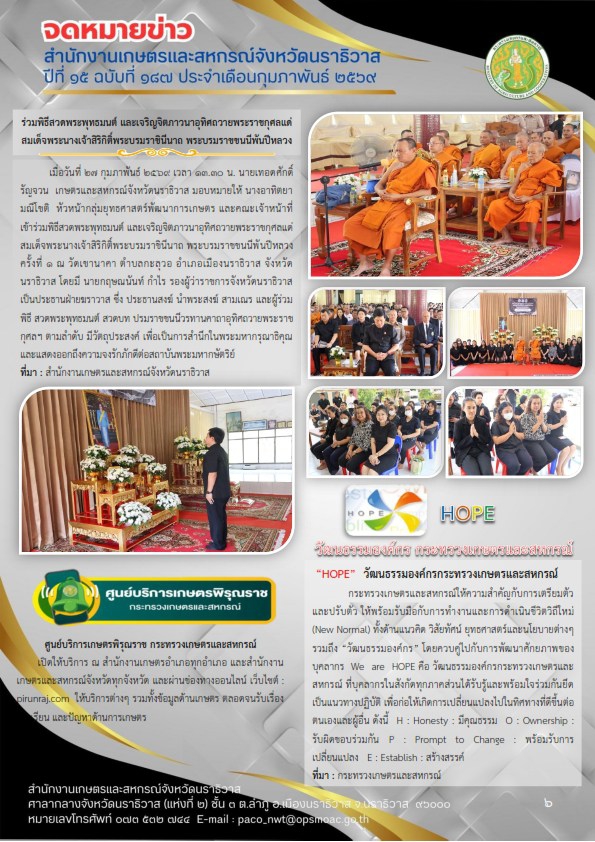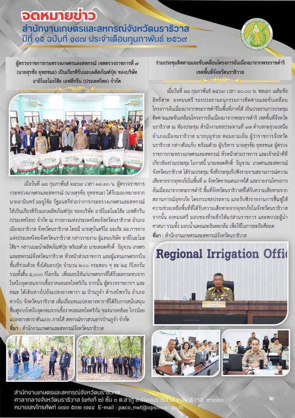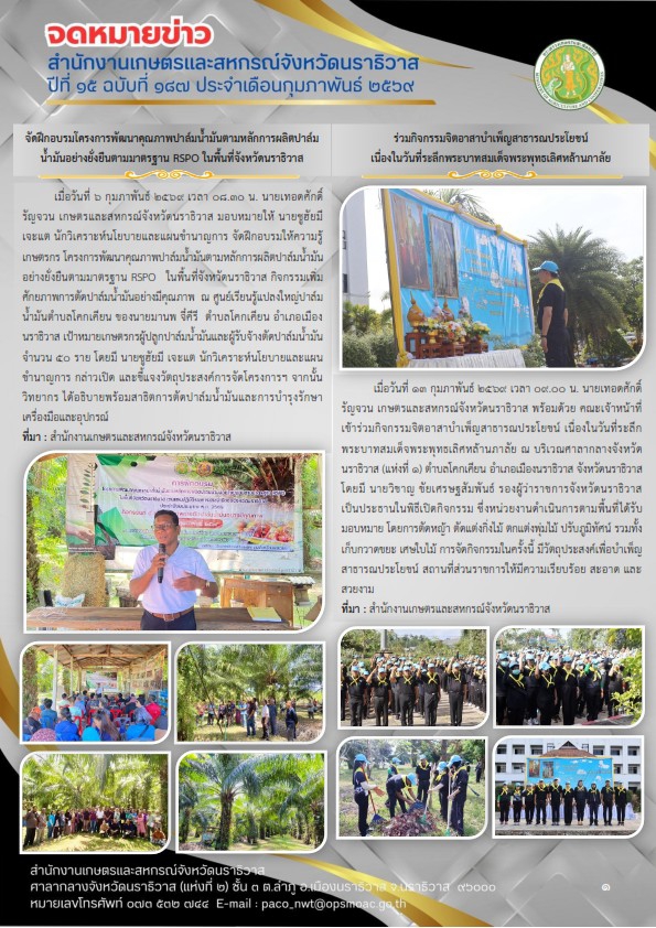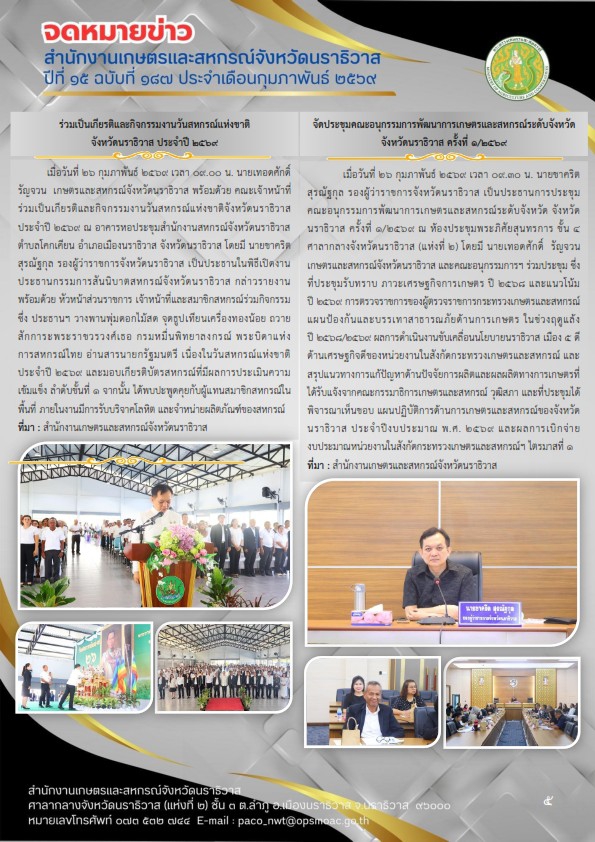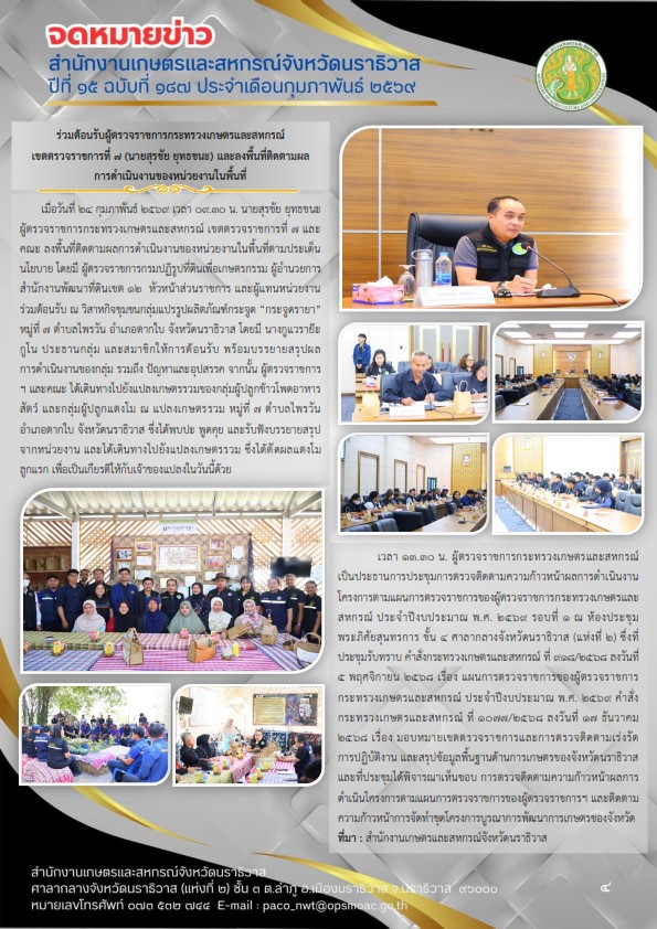 จดหมายข่าวสำนักงานเกษตรและสหกรณ์จังหวัดนราธิวาสประจำเดือนกุมภาพันธ์ พ.ศ. 2569