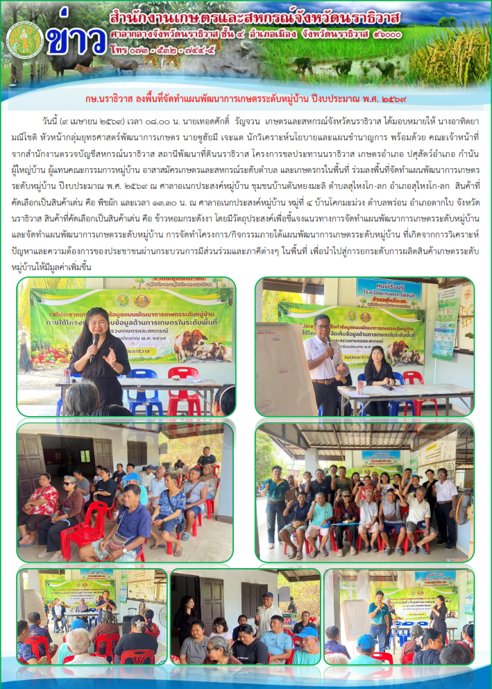 ผลการเปิดโอกาสให้มีส่วนร่วมในการจัดทำแผนพัฒนาการเกษตรระดับหมู่บ้าน ปีงบประมาณ พ.ศ.2569