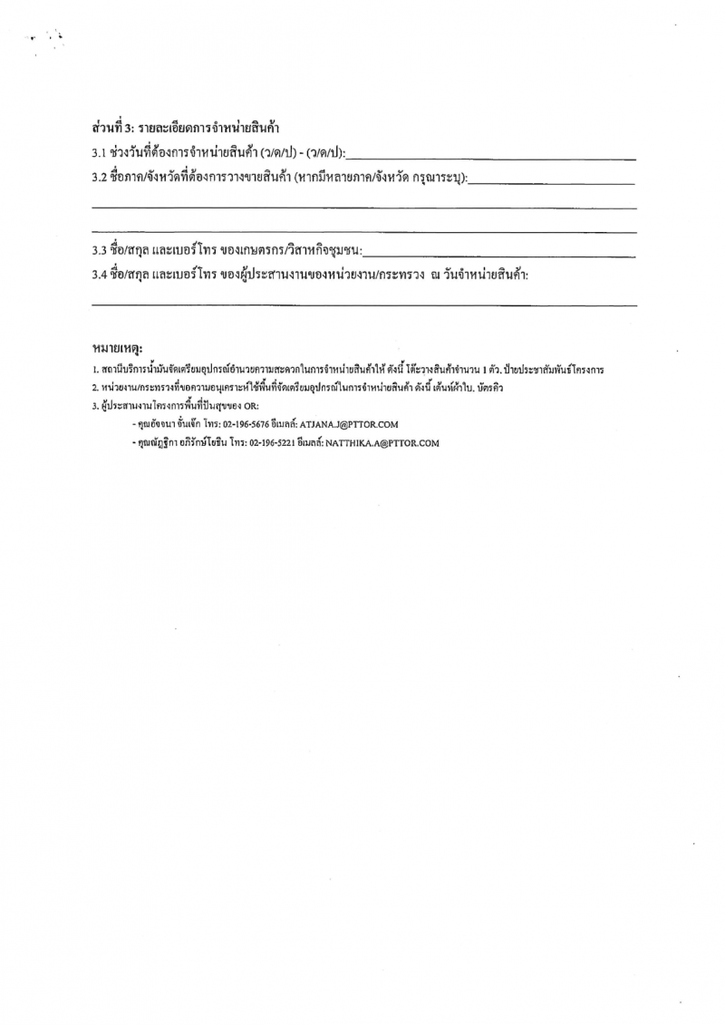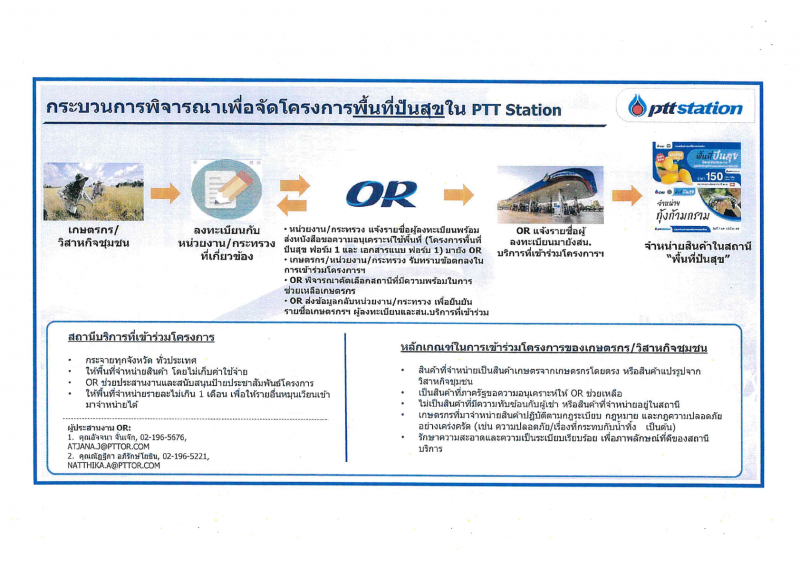 นำสินค้าเกษตรอินทรีย์ ไปจำหน่ายบริเวณสถานีบริการน้ำมัน ปตท สามารถประสานมาได้