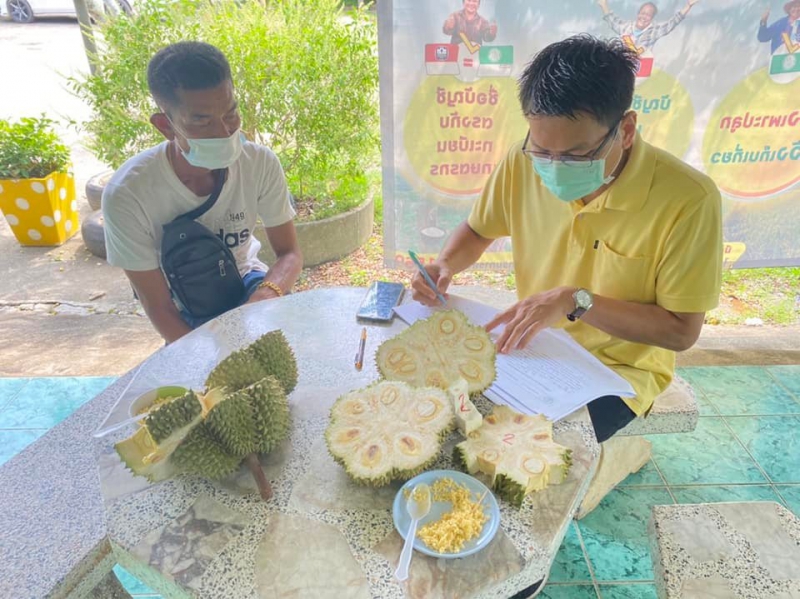 ทุเรียนพันธ์ุกระดุม ประกาศวันเก็บเกี่ยว 20 มีนาคม 2565 เปอร์เซ็นต์น้ำหนักแห้งฯ ไม่น้อยกว่า 27 %