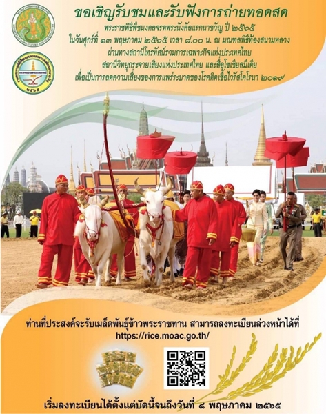 พันธุ์ข้าวดังกล่าว ส่วนหนึ่งใช้หว่านในระหว่างพิธี และจัดเป็น “พันธุ์ข้าวทรงปลูกพระราชทาน” บรรจุใส่ซองขนาดเล็กเพื่อจัดส่งให้จังหวัดต่าง ๆ สำหรับใช้แจกจ่ายแก่เกษตรกรรับไปเป็นมิ่งขวัญและสิริมงคล ในการประกอบอาชีพตามพระราชประสงค์ และเมล็ดพันธุ์ที่เหลือทั้งหมด กรมการข้าวขอพระราชทานพระบรมราชานุญาตนำไปปลูกไว้ทำพันธุ์ในฤดูกาลปี พ.ศ. 2565 เพื่อเป็นต้นตระกูลของพืชพันธุ์ดีเผยแพร่สู่เกษตรกรต่อไป โดยสามารถสอบถามรายละเอียดเพิ่มเติมได้ที่กรมการข้าว กองเมล็ดพันธุ์ข้าว ที่เบอร์โทรศัพท์ 02-561-3794 ศูนย์เมล็ดพันธุ์ข้าวทั้ง 29 แห่ง ศูนย์วิจัยข้าวทั้ง 27 แห่ง และสถาบันวิทยาศาสตร์ข้าว จังหวัดสุพรรณบุรี นอกจากนี้ ผู้ที่สนใจสามารถรับเมล็ดพันธุ์พระราชทานผ่านการลงทะเบียนออนไลน์ได้ทาง HYPERLINK ttps://rice.moac.go.th ได้ตั้งแต่บัดนี้จนถึงวันที่ 8 พฤษภาคม พ.ศ. 2565 ซึ่งเมื่อลงทะเบียนออนไลน์แล้ว สามารถเดินทางไปรับพันธุ์ข้าวพระราชทานได้ที่สำนักงานเกษตรจังหวัด หรือสำนักงานเกษตรอำเภอใกล้บ้านท่าน หลังจากวันที่ 13 พฤษภาคม พ.ศ.2565 เป็นต้นไป โดยจะได้รับเมล็ดพันธุ์ข้าวพระราชทานคนละ 2 ซอง